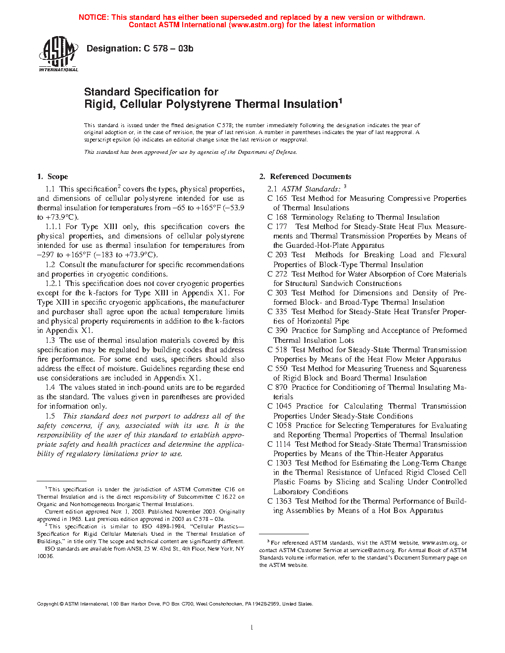 1.1.1 For Type XIII only, this specification covers the physical properties, and dimensions of cellular polystyrene intended for use as thermal insulation for temperatures from −297 to +165°F (−183 to +73.9°C).