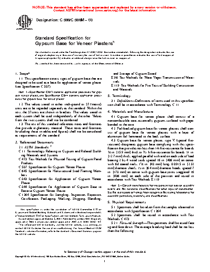 Note 1--Specification C843 contains application procedures for gypsum veneer plaster, and specification C 844 contains application procedures for gypsum base for veneer plaster.
