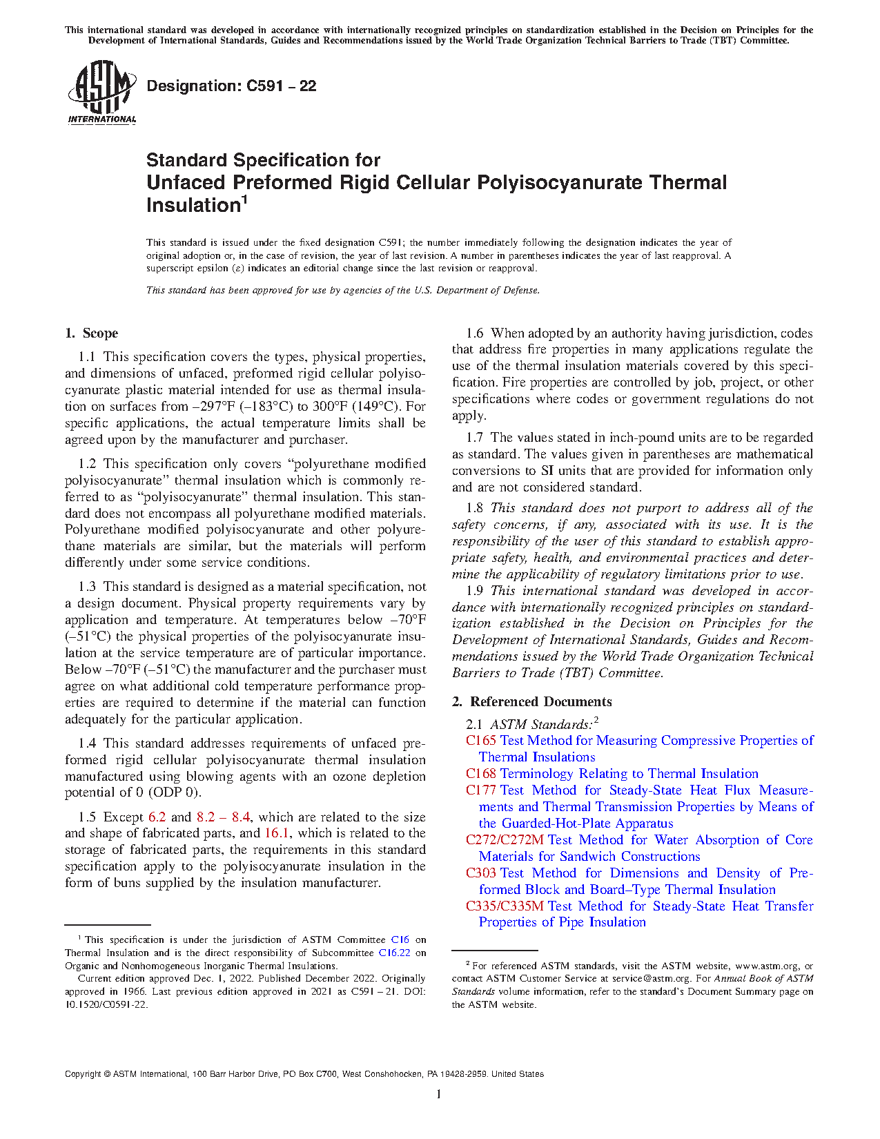 1.4 This standard addresses requirements of unfaced preformed rigid cellular polyisocyanurate thermal insulation manufactured using blowing agents with an ozone depletion potential of 0 (ODP 0).