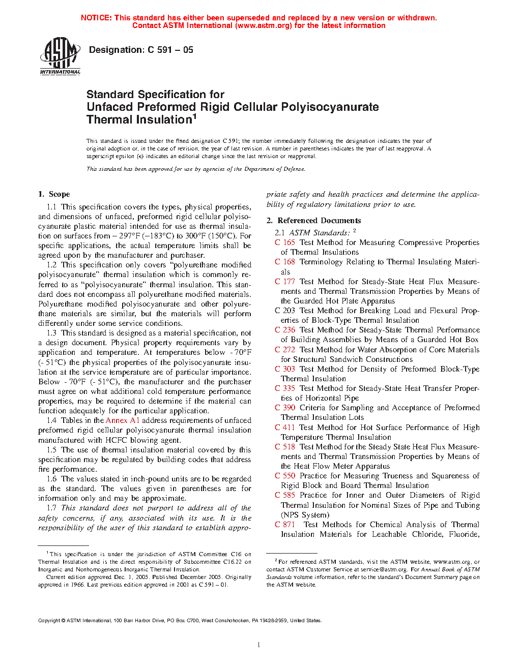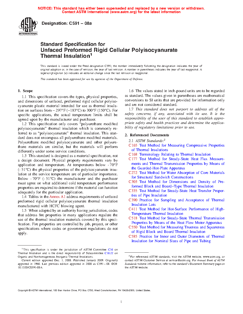1.2 This specification only covers “polyurethane modified polyisocyanurate” thermal insulation which is commonly referred to as “polyisocyanurate” thermal insulation. This standard does not encompass all polyurethane modified materials. Polyurethane modified polyisocyanurate and other polyurethane materials are similar, but the materials will perform differently under some service conditions.