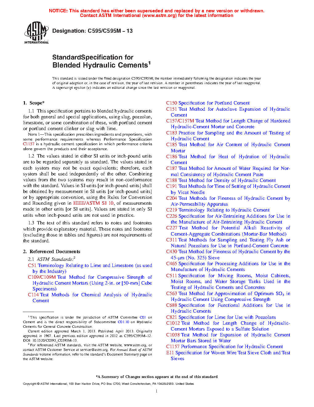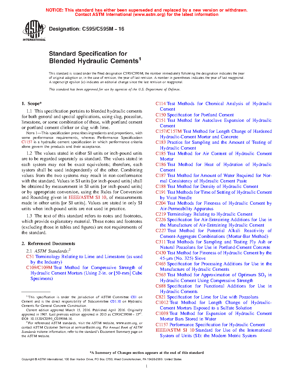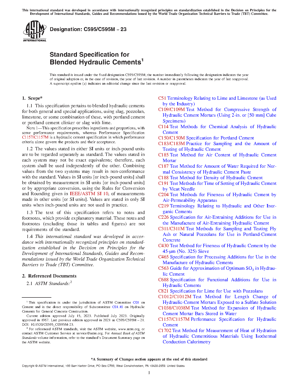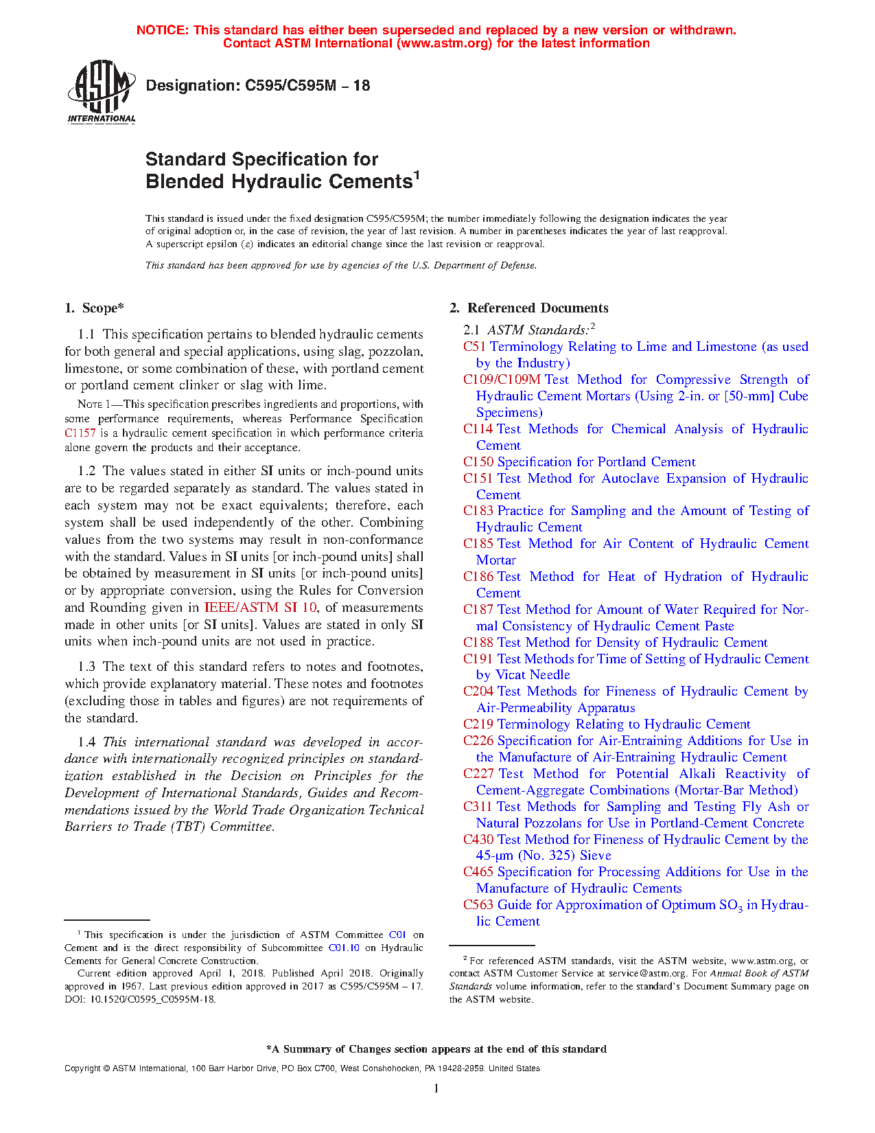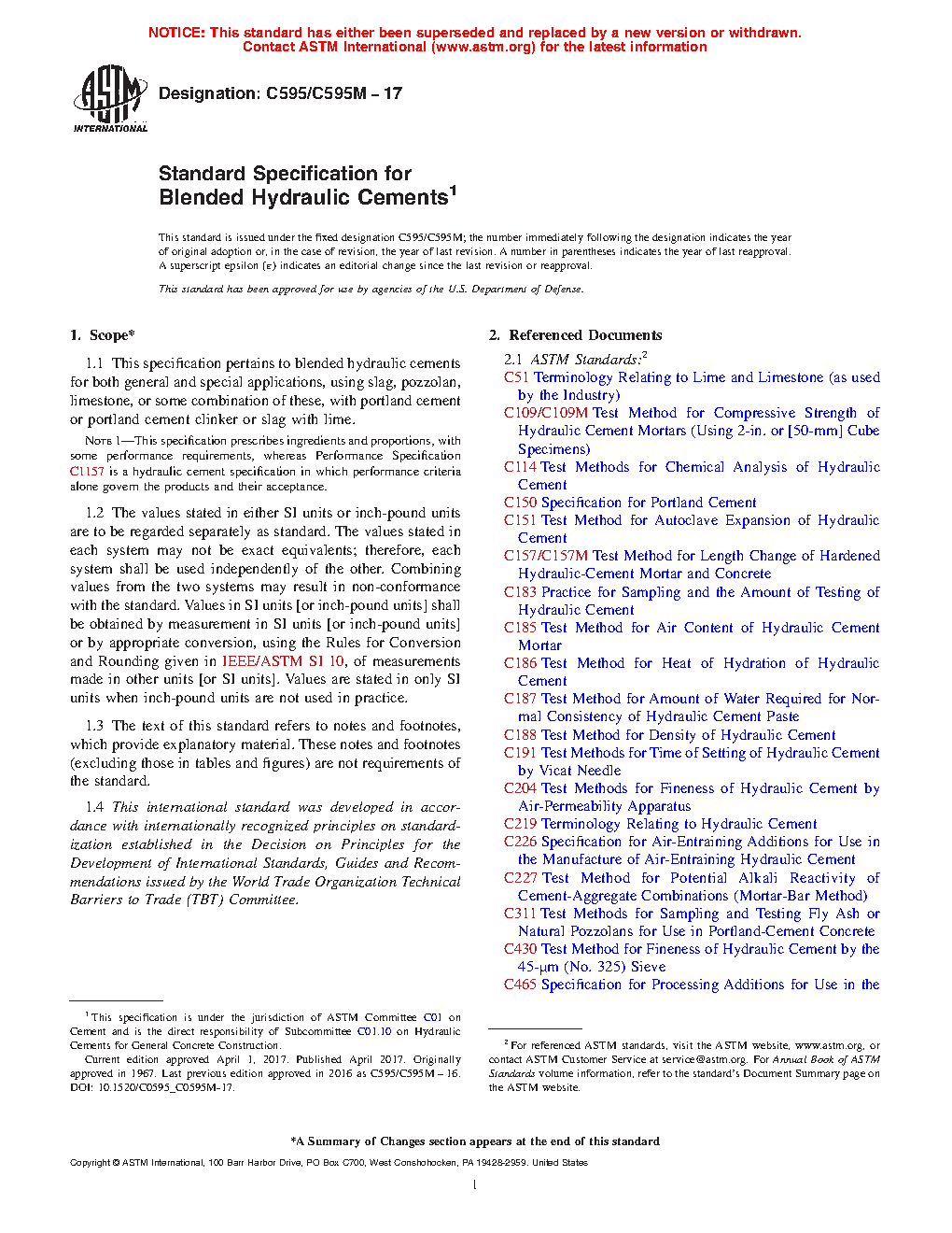1.1 This specification pertains to blended hydraulic cements for both general and special applications, using slag, pozzolan, limestone, or some combination of these, with portland cement or portland cement clinker or slag with lime.