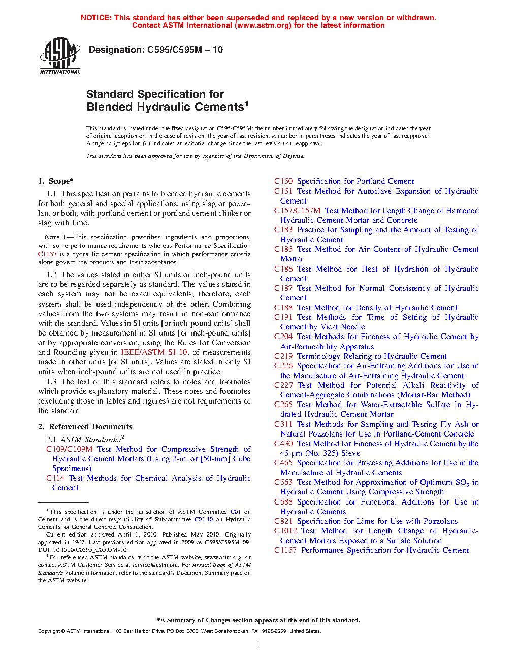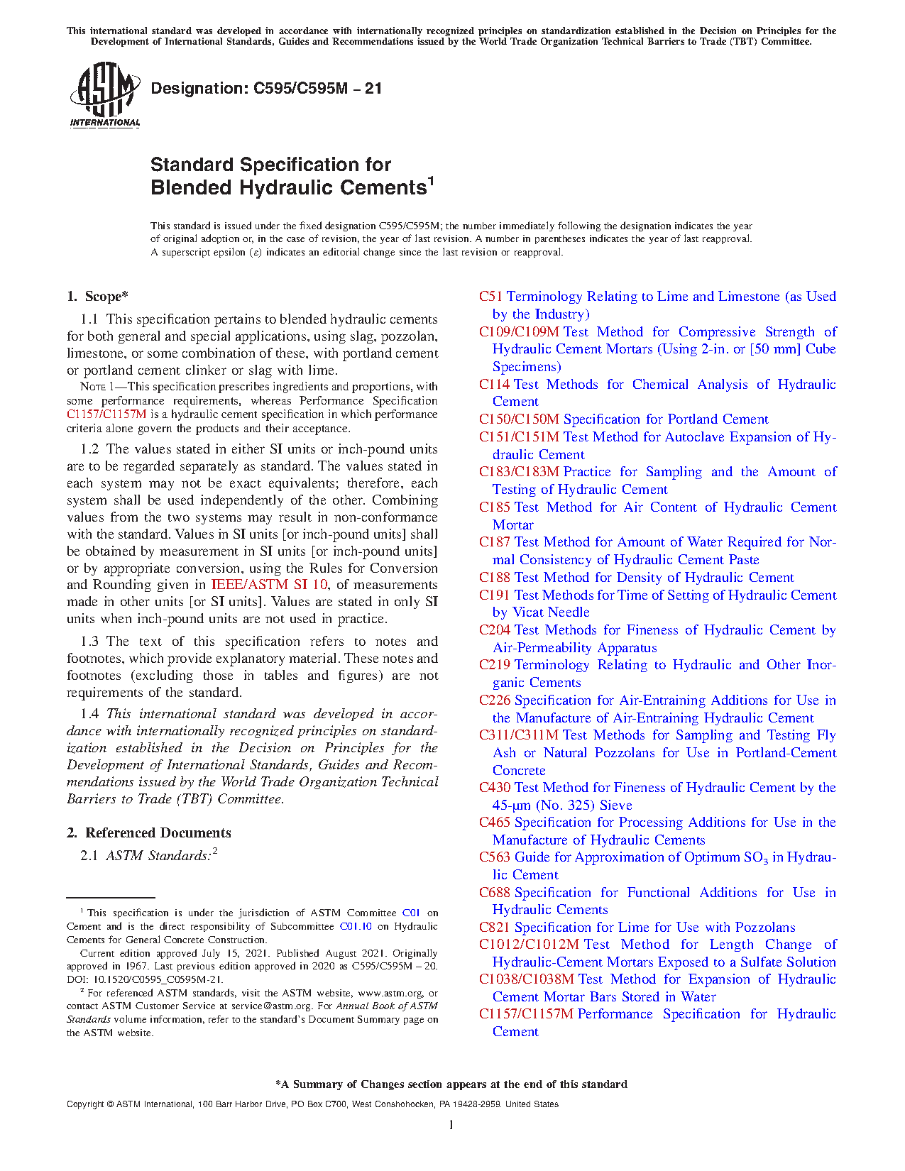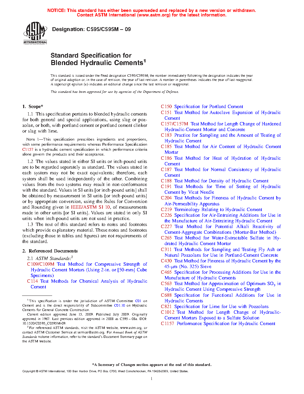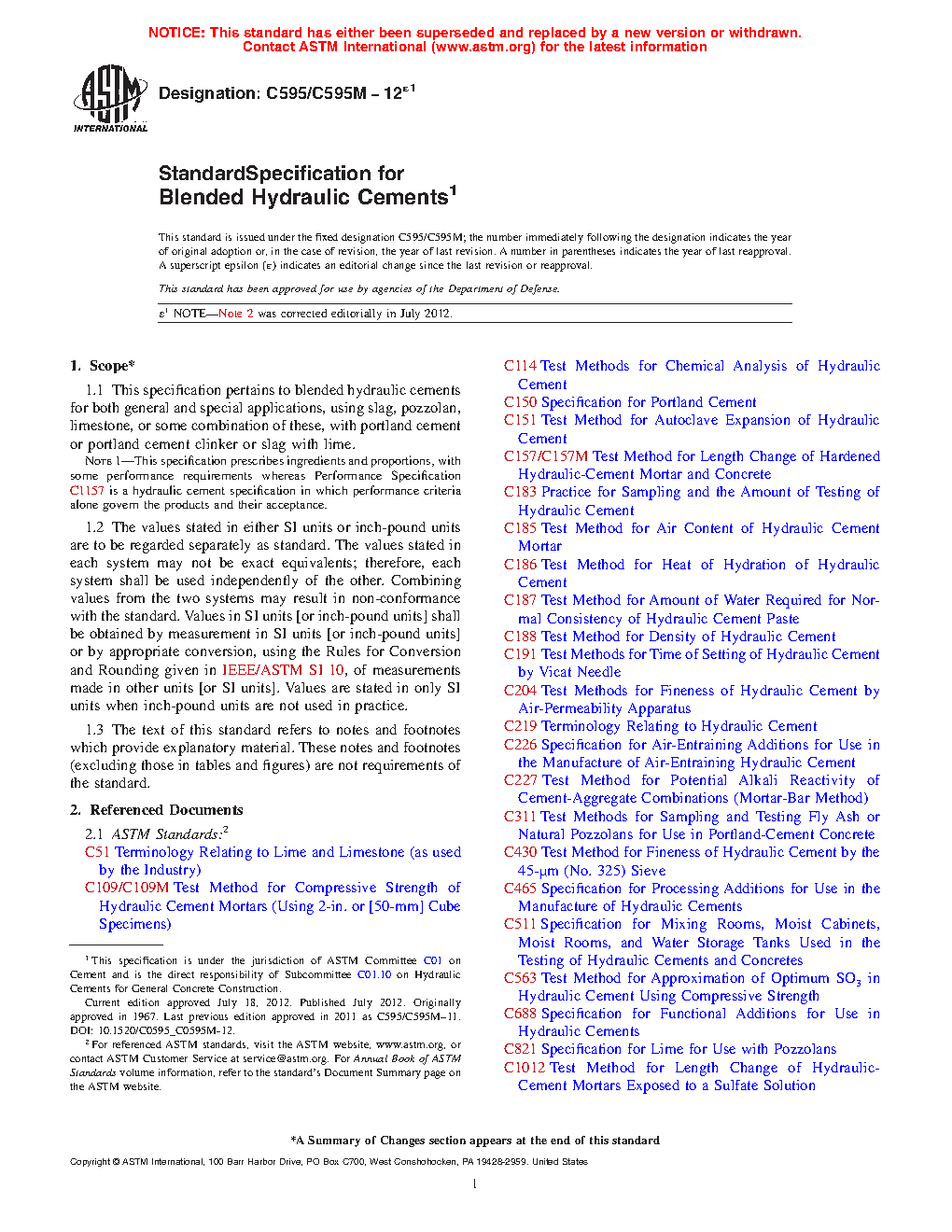 1.1 This specification pertains to blended hydraulic cements for both general and special applications, using slag, pozzolan, limestone, or some combination of these, with portland cement or portland cement clinker or slag with lime.