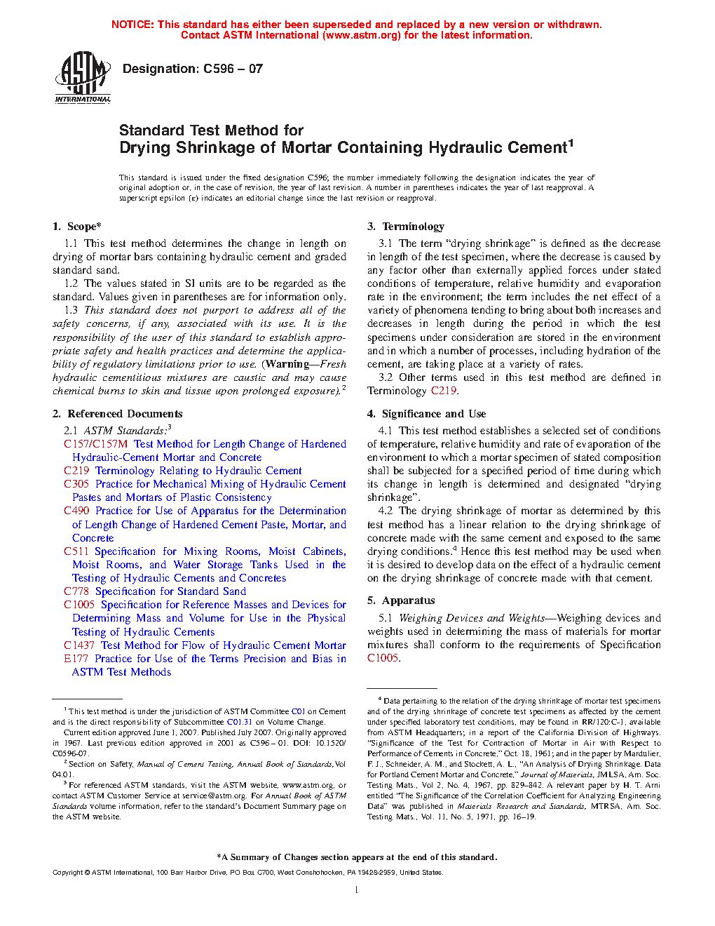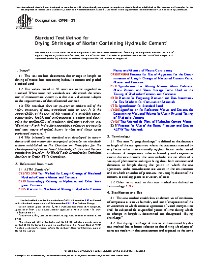 1.1 This test method determines the change in length on drying of mortar bars containing hydraulic cement and graded standard sand.