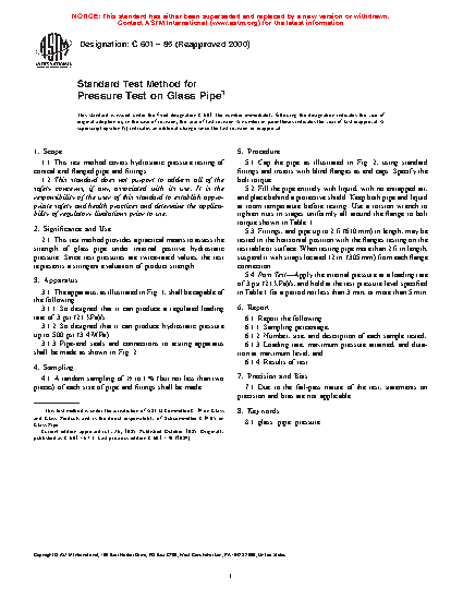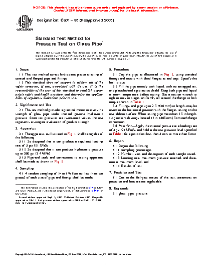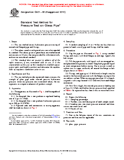 2.1 This test method provides a practical means to assess the strength of glass pipe under internal positive hydrostatic pressure. Since test pressures are twice-rated values, the test represents a stringent evaluation of product strength.