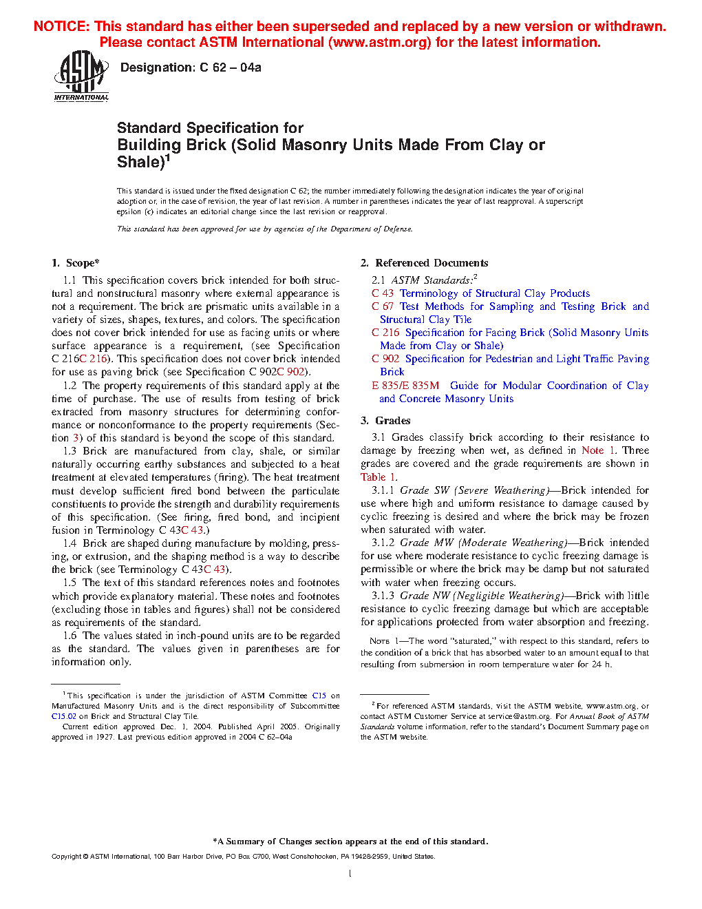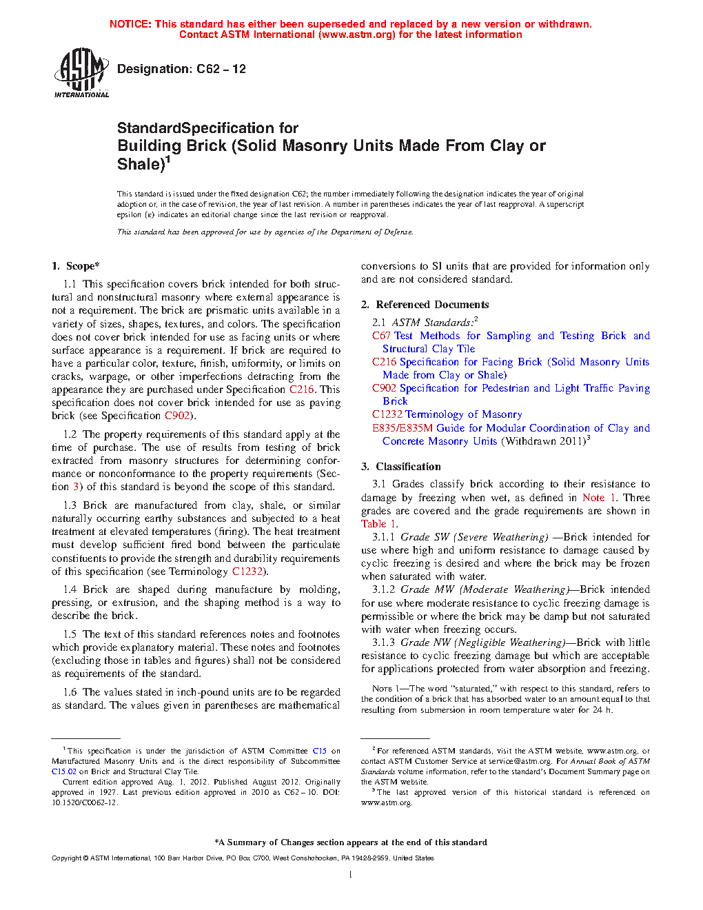 1.2 The requirements of this specification apply at the time of purchase. The use of results from testing of brick extracted from masonry structures for determining conformance or nonconformance to the requirements of this specification is beyond the scope of this standard.