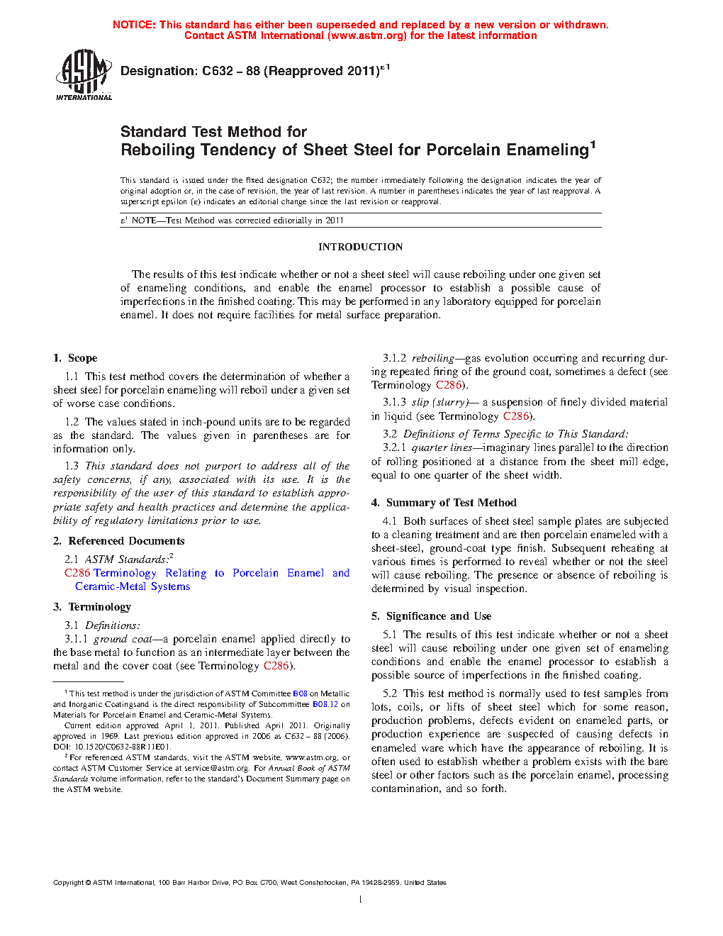5.1 The results of this test indicate whether or not a sheet steel will cause reboiling under one given set of enameling conditions and enable the enamel processor to establish a possible source of imperfections in the finished coating.