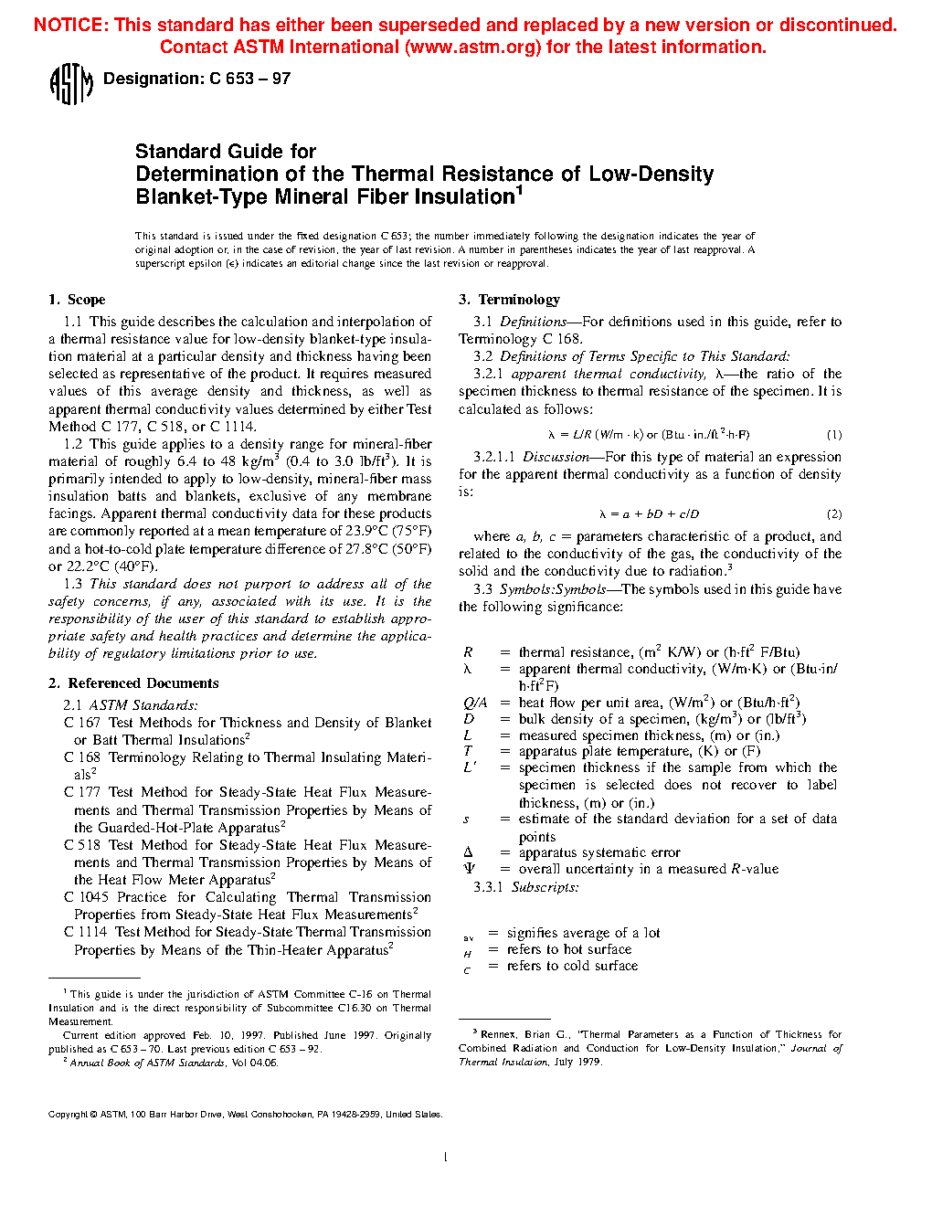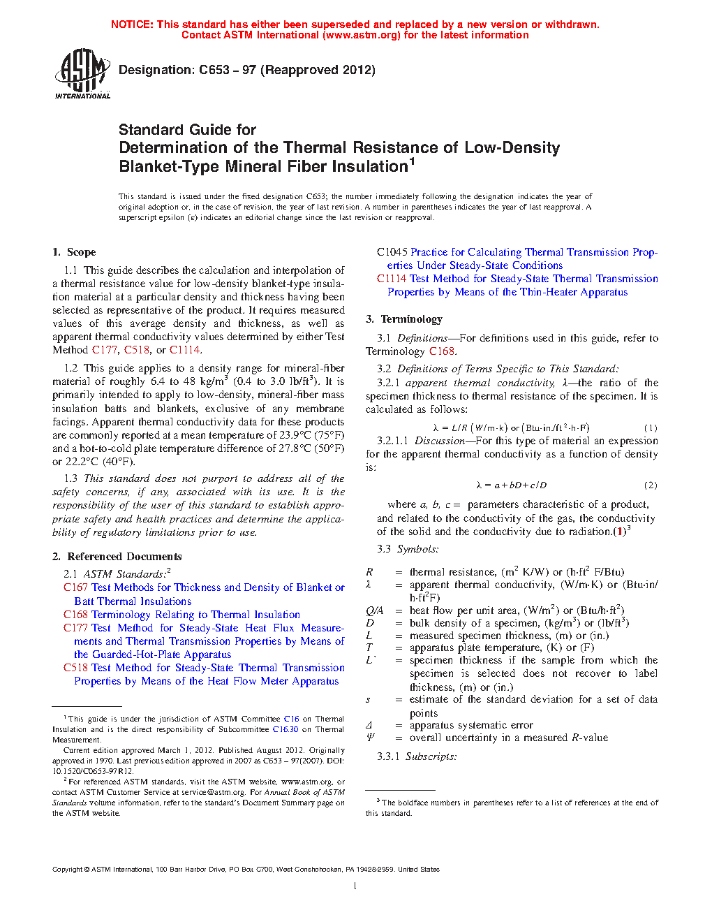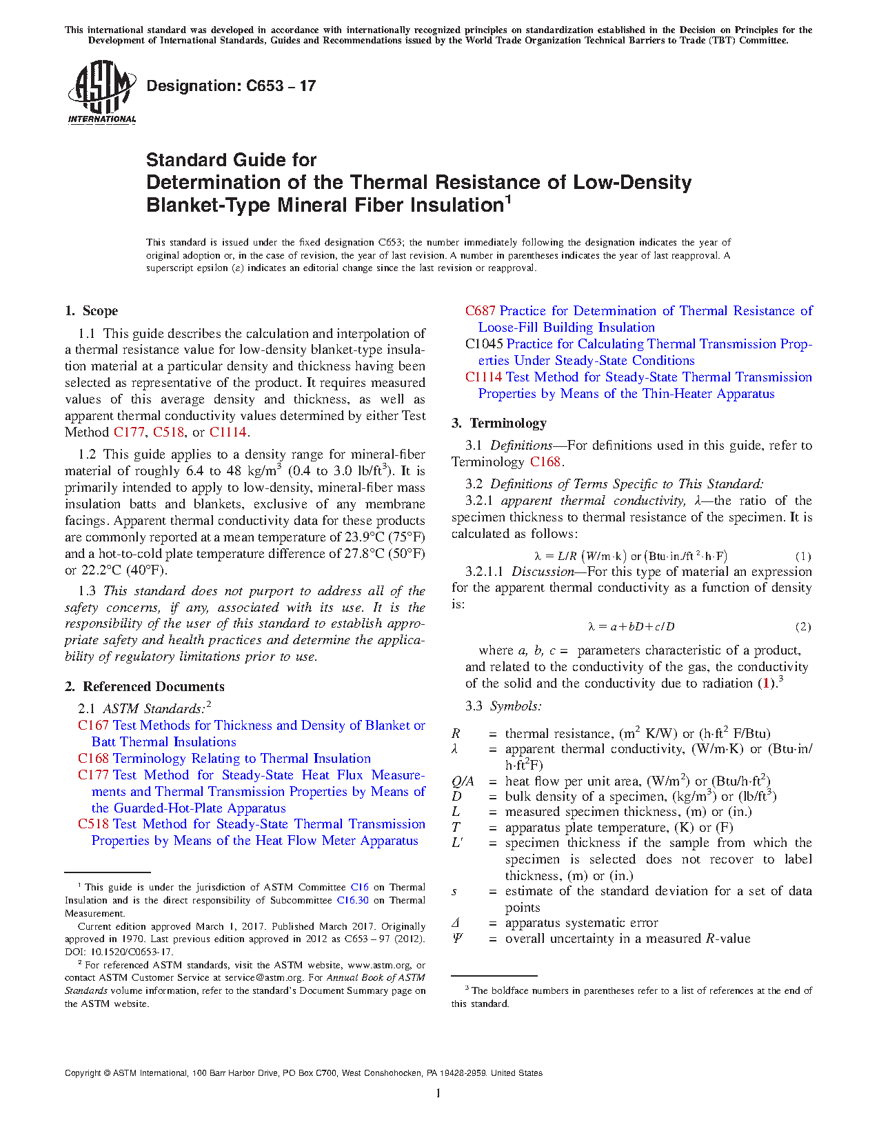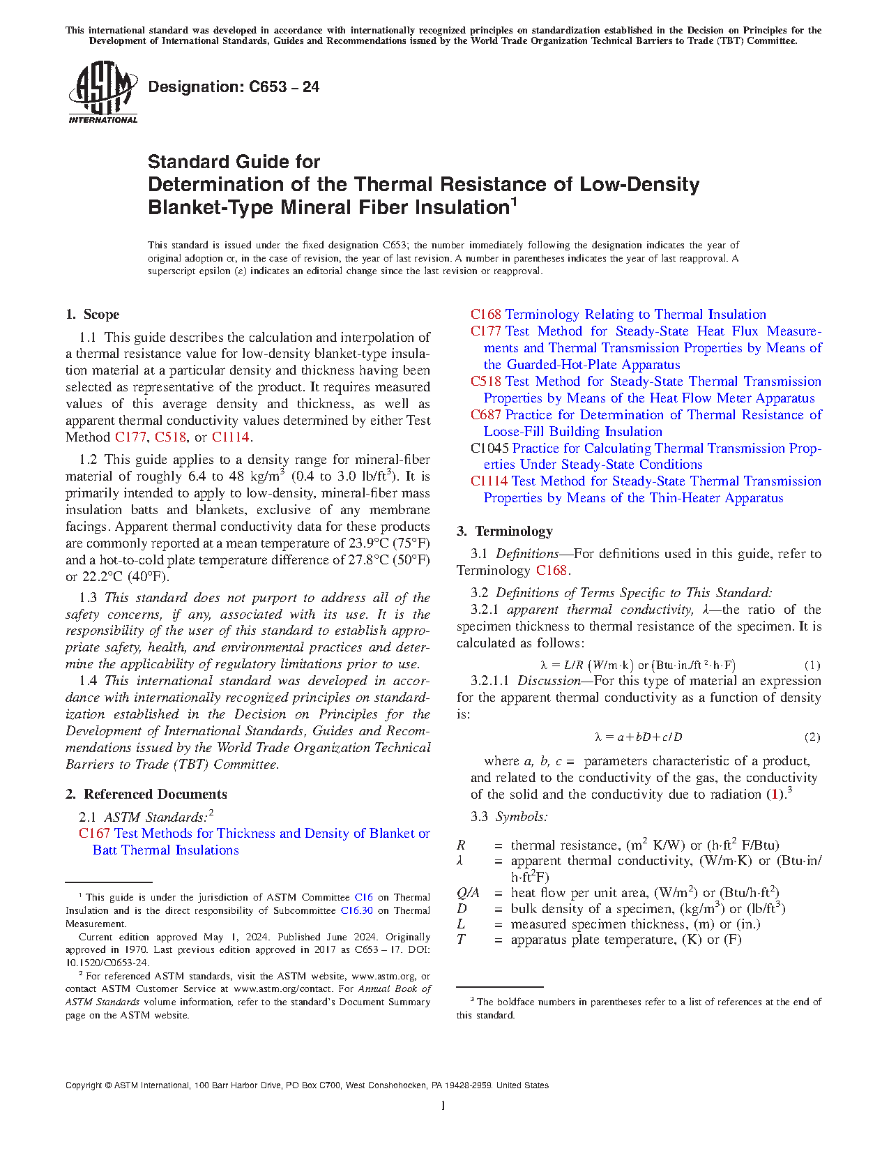 1.2 This guide applies to a density range for mineral-fiber material of roughly 6.4 to 48 kg/m (0.4 to 3.0 lb/ft ). It is primarily intended to apply to low-density, mineral-fiber mass insulation batts and blankets, exclusive of any membrane facings. Apparent thermal conductivity data for these products are commonly reported at a mean temperature of 23.9°C (75°F) and a hot-to-cold plate temperature difference of 27.8°C (50°F) or 22.2°C (40°F).