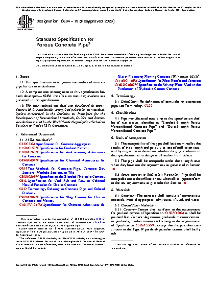 1.1 This specification covers porous nonreinforced concrete pipe for use in underdrains.