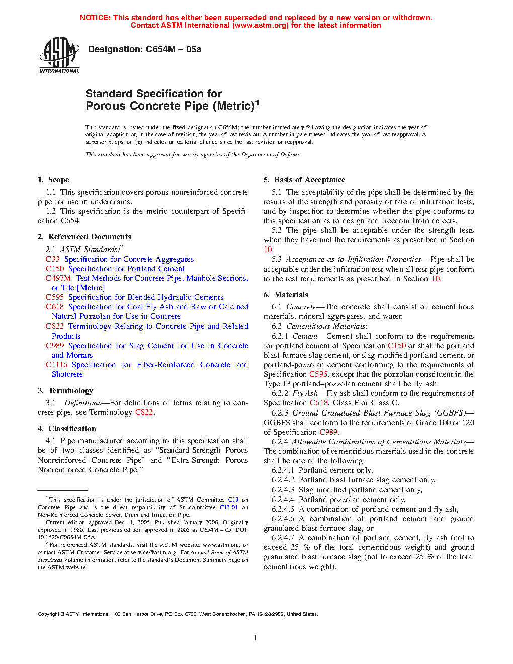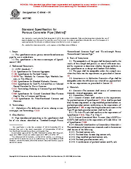 1.1 This specification covers porous nonreinforced concrete pipe for use in underdrains.