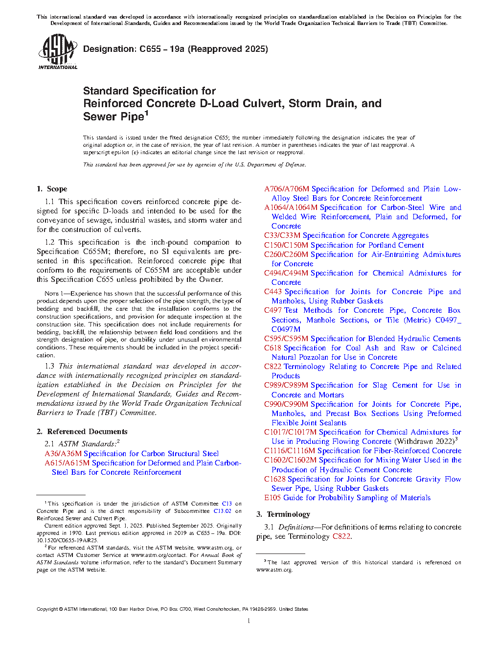 1.1 This specification covers reinforced concrete pipe designed for specific D-loads and intended to be used for the conveyance of sewage, industrial wastes, and storm water and for the construction of culverts.