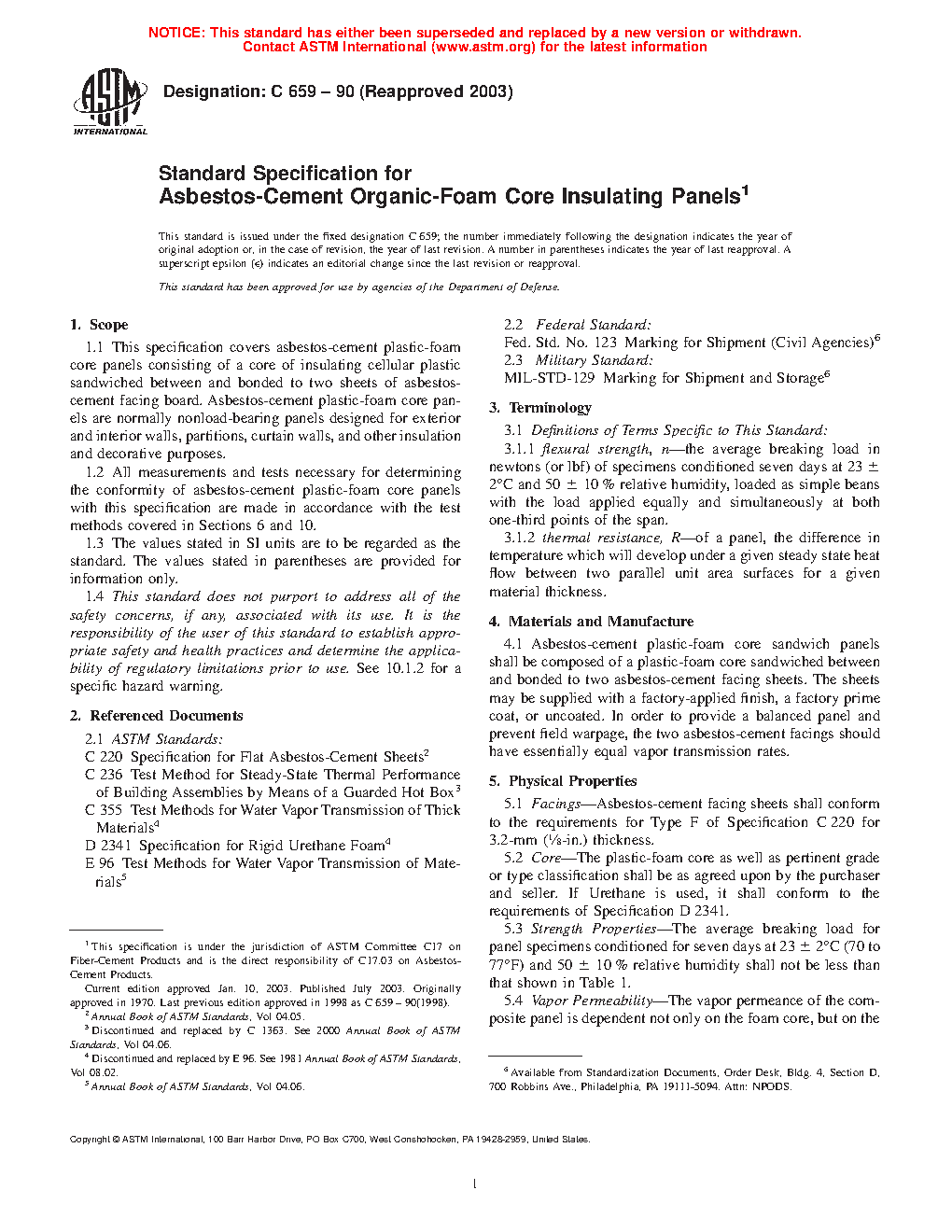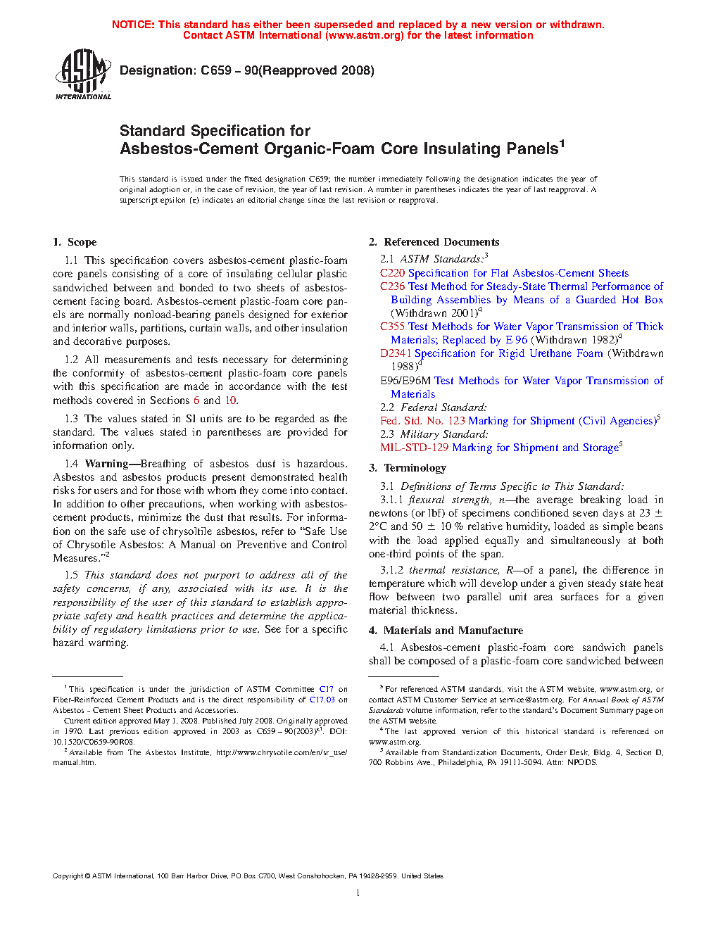 1.2 All measurements and tests necessary for determining the conformity of asbestos-cement plastic-foam core panels with this specification are made in accordance with the test methods covered in Sections 6 and 10.