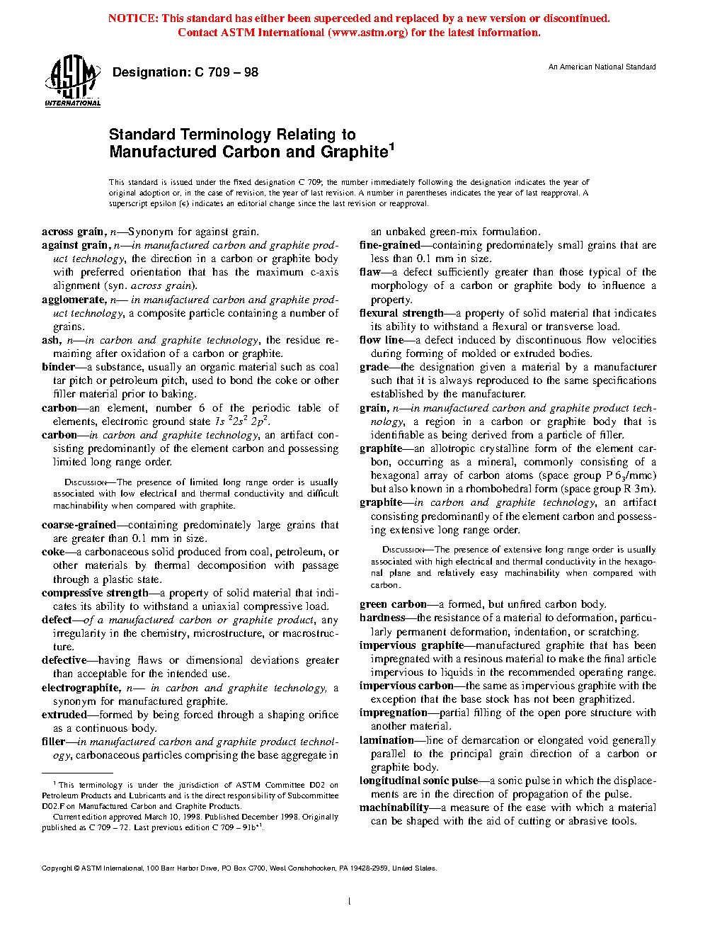 Standard Terminology Relating to Manufactured Carbon and Graphite