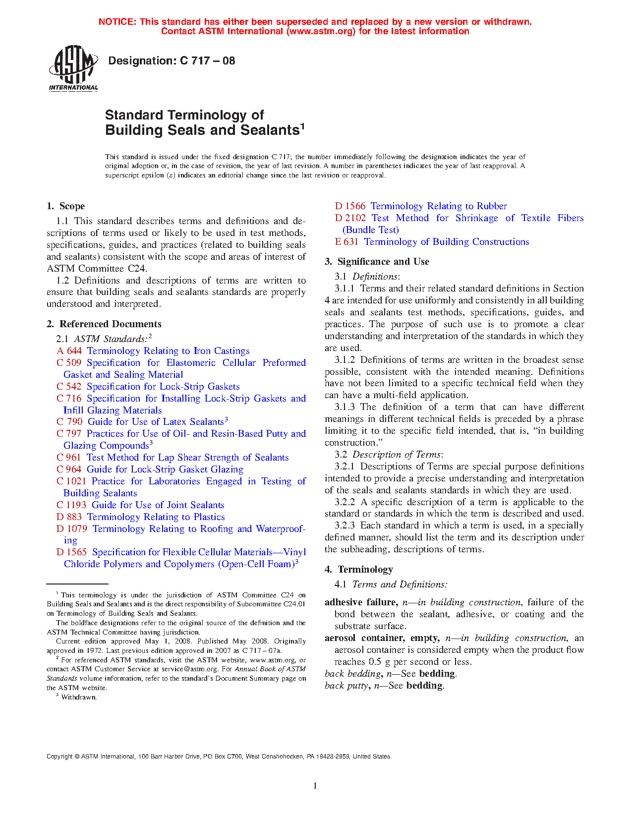 1.2 Definitions and descriptions of terms are written to ensure that building seals and sealants standards are properly understood and interpreted.
