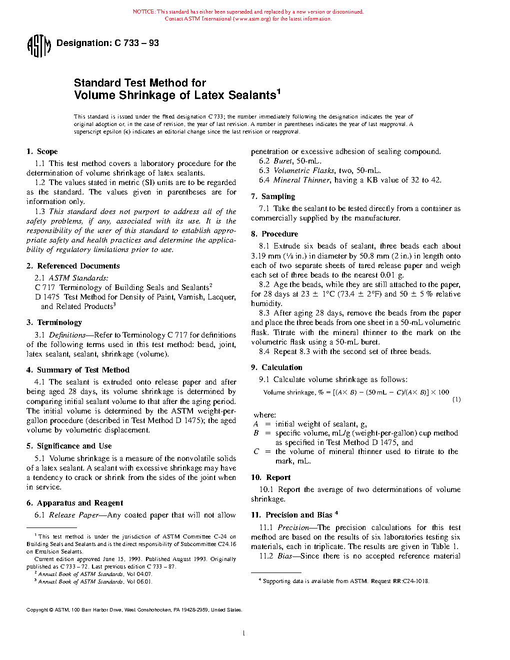 1.1 This test method covers a laboratory procedure for the determination of volume shrinkage of latex sealants.