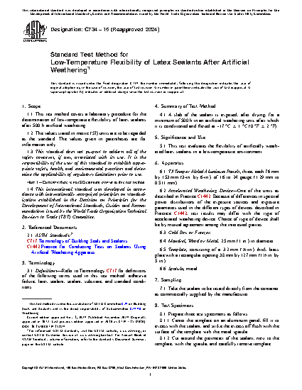 1.1 This test method covers a laboratory procedure for the determination of low-temperature flexibility of latex sealants after 500 h artificial weathering.