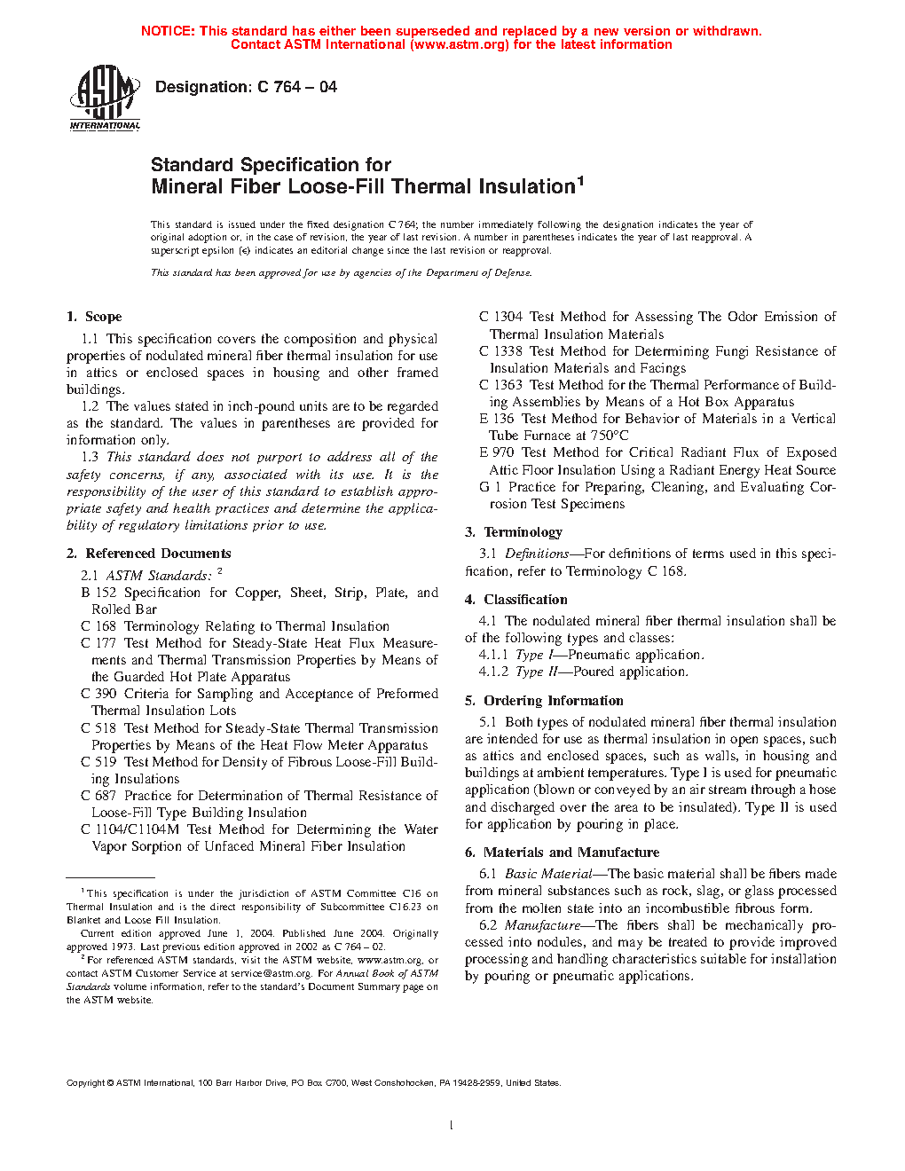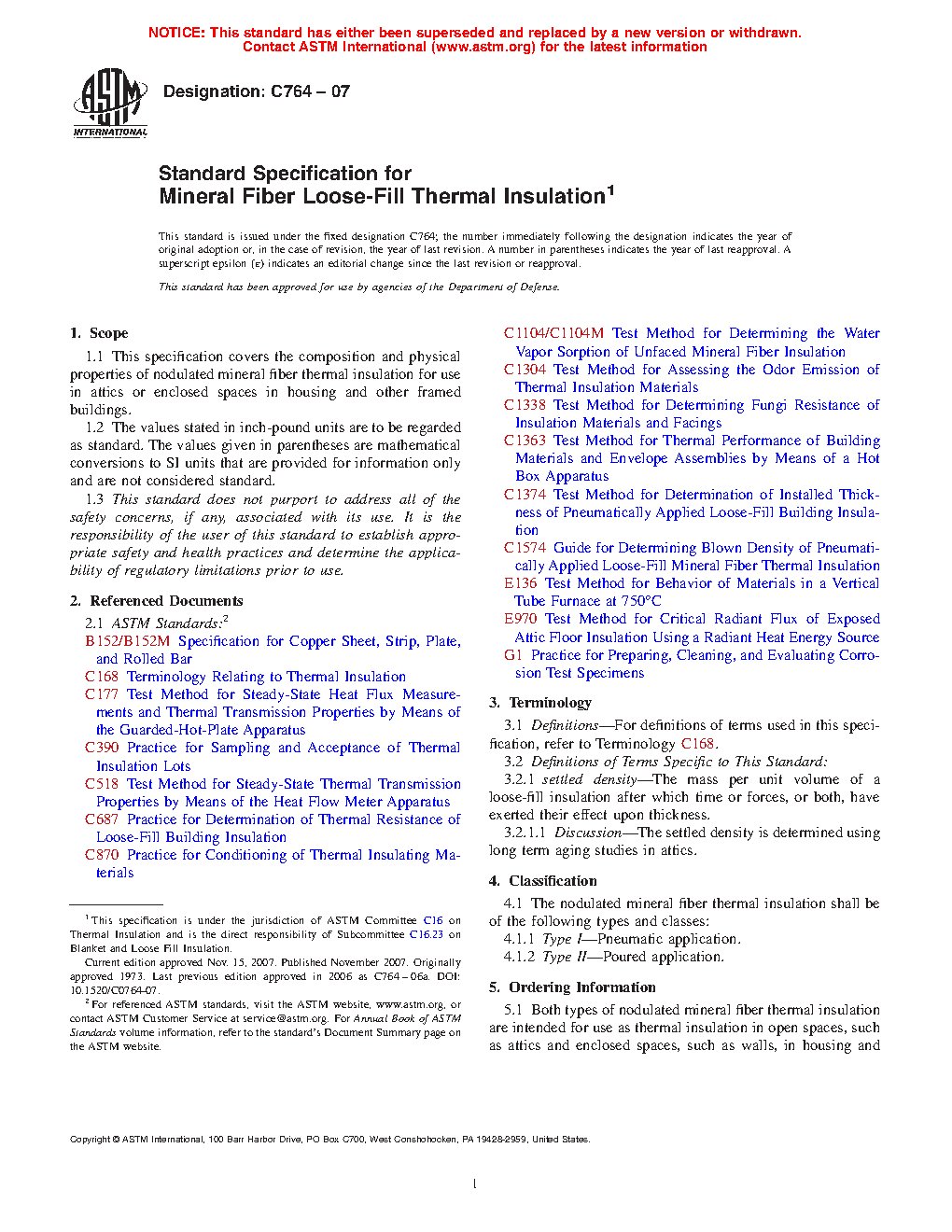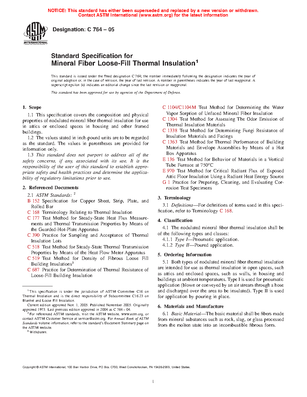 1.1 This specification covers the composition and physical properties of nodulated mineral fiber thermal insulation for use in attics or enclosed spaces in housing and other framed buildings.