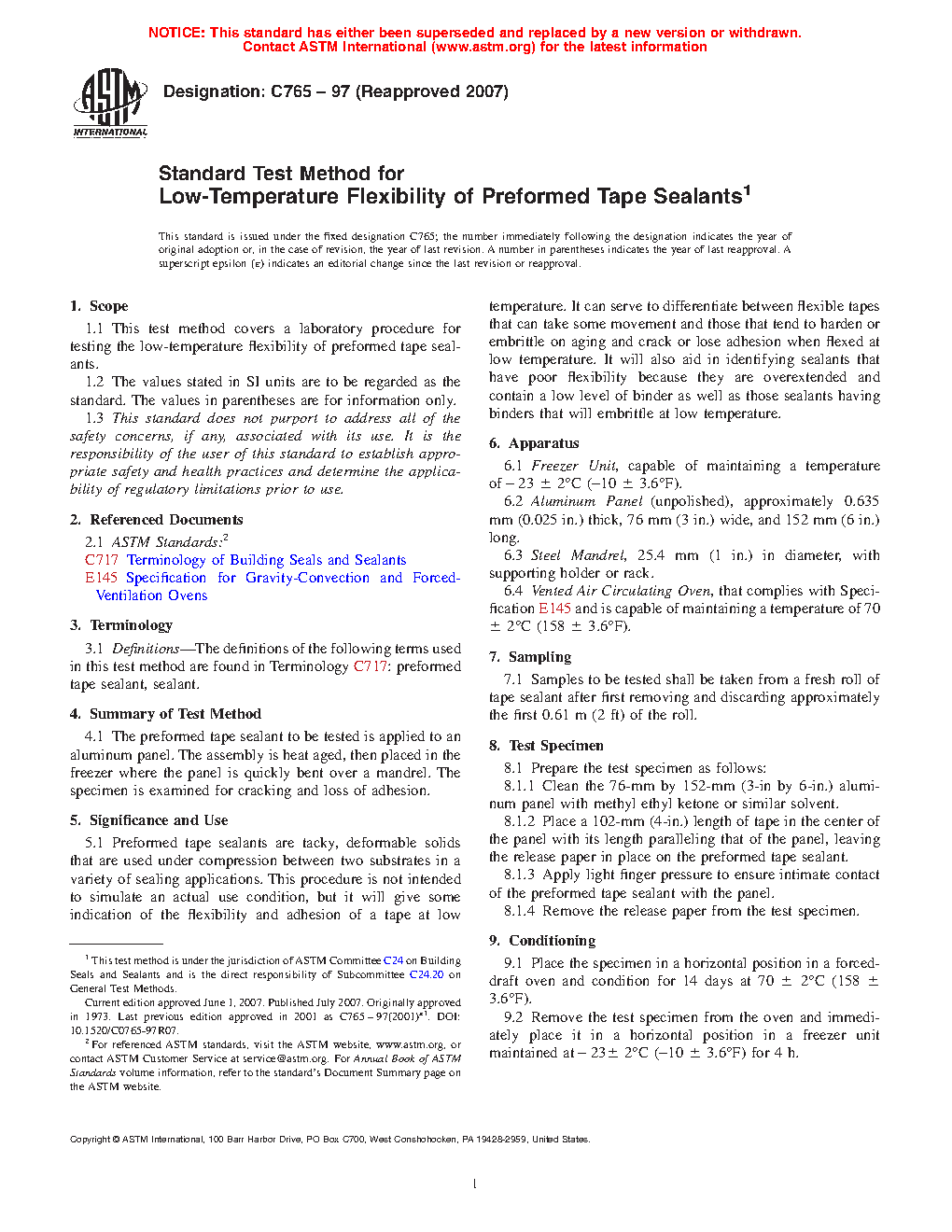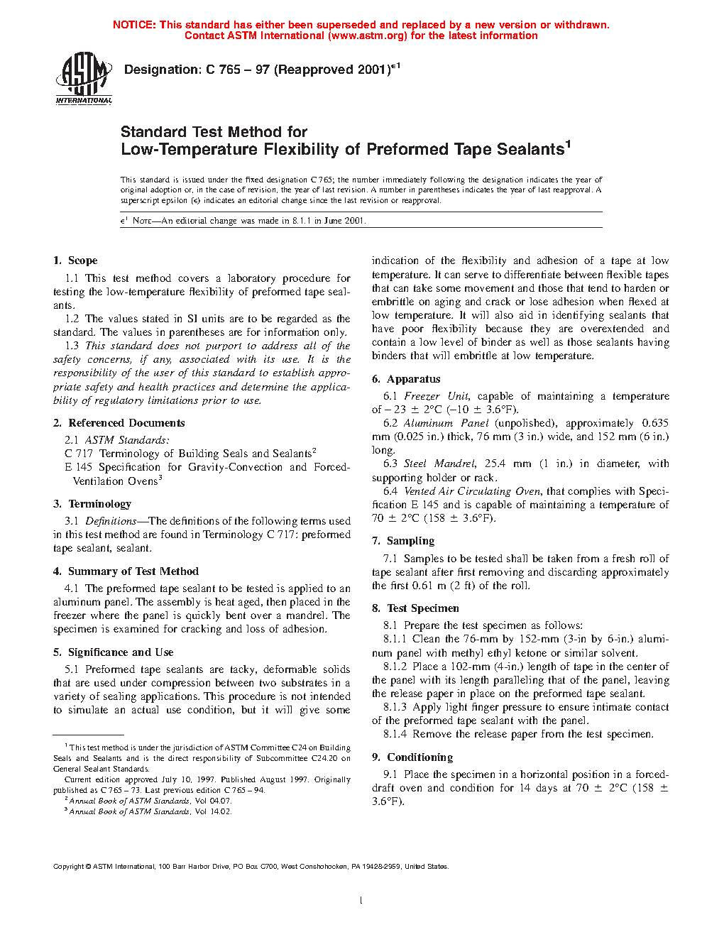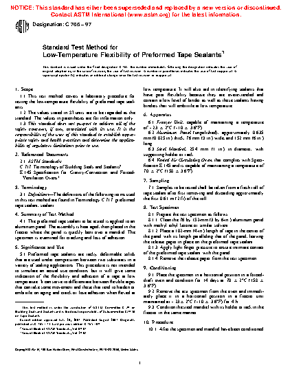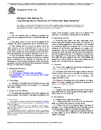 1.1 This test method covers a laboratory procedure for testing the low-temperature flexibility of preformed tape sealants.