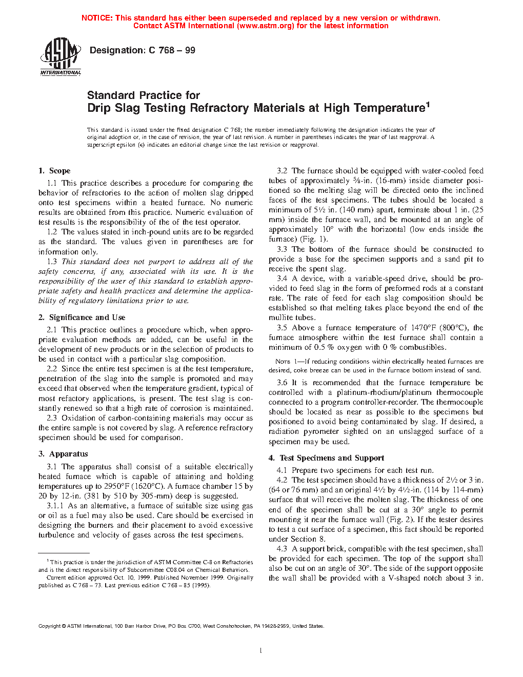 Standard Practice for Drip Slag Testing Refractory Materials at High Temperature (Withdrawn 2004)