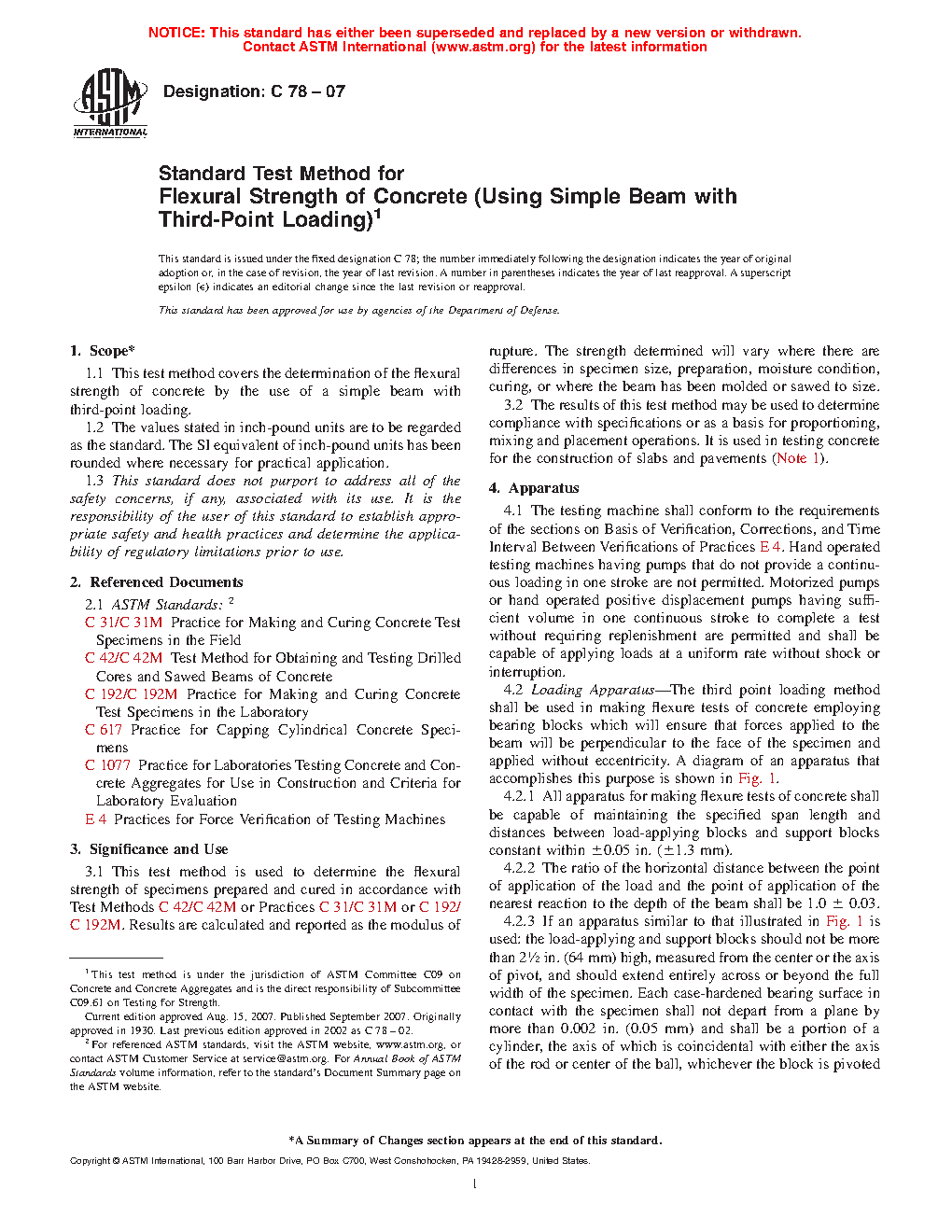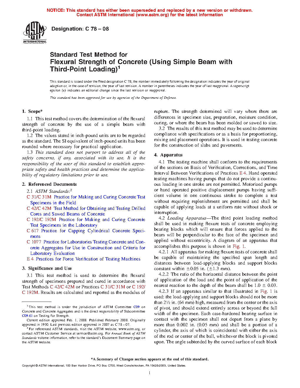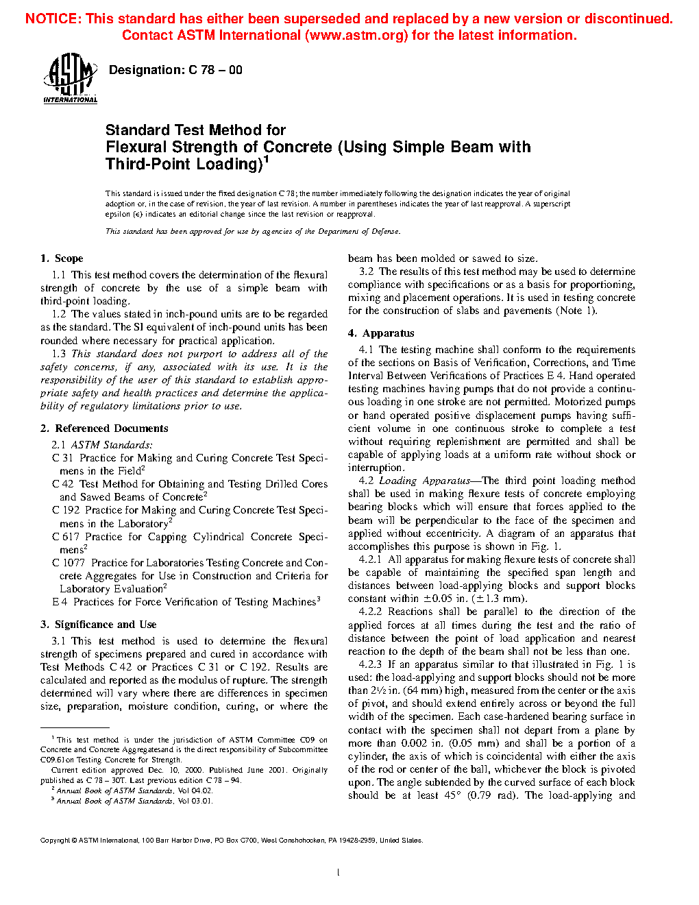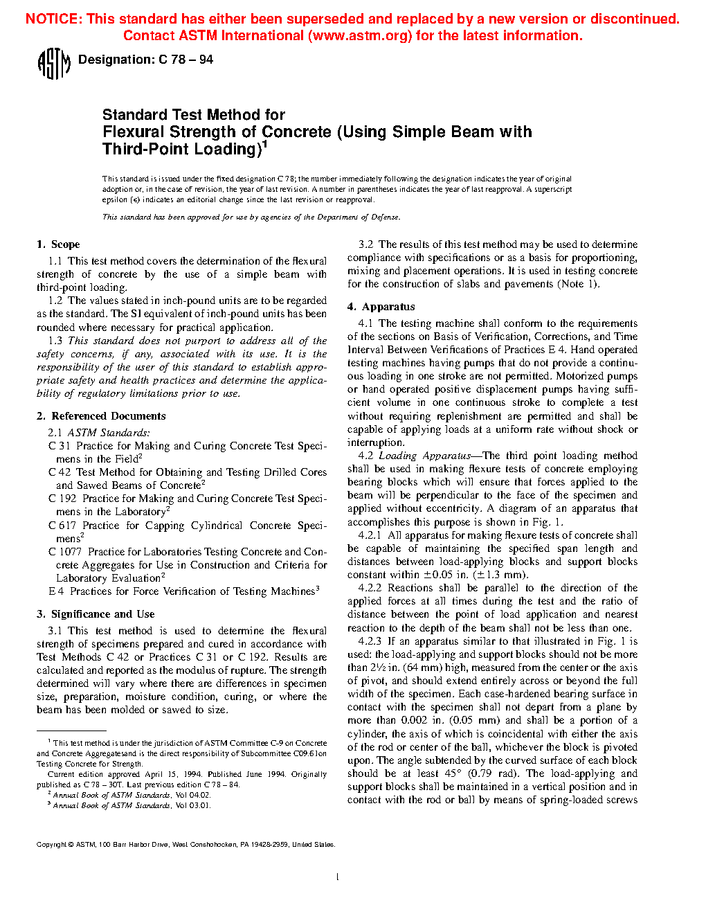 This test method is used to determine the flexural strength of specimens prepared and cured in accordance with Test Methods C 42/C 42M