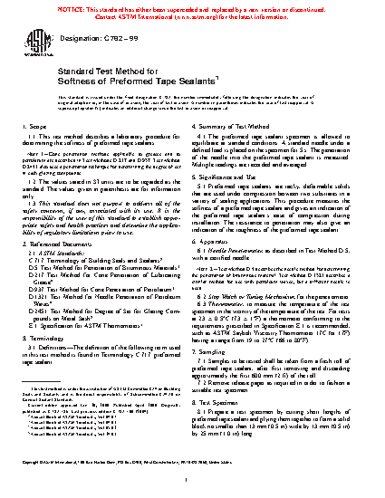 5.1 Preformed tape sealants are tacky, deformable solids that are used under compression between two substrates in a variety of sealing applications. This procedure measures the softness of a preformed tape sealant and gives an indication of the preformed tape sealant's ease of compression during installation. The resistance to penetration may also give an indication of the toughness of the preformed tape sealant.