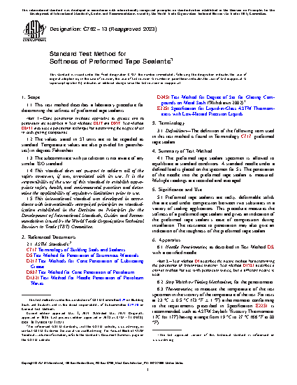 1.1 This test method describes a laboratory procedure for determining the softness of preformed tape sealants.