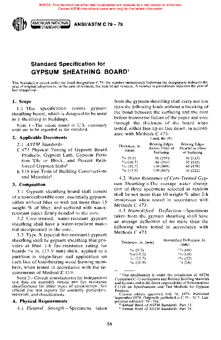 1.1 This specification covers treated core and nontreated core gypsum sheathing, which is designed to be used as a sheathing on buildings.