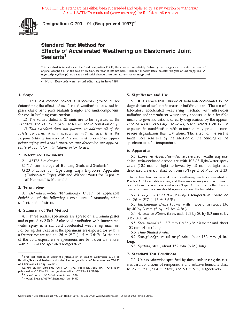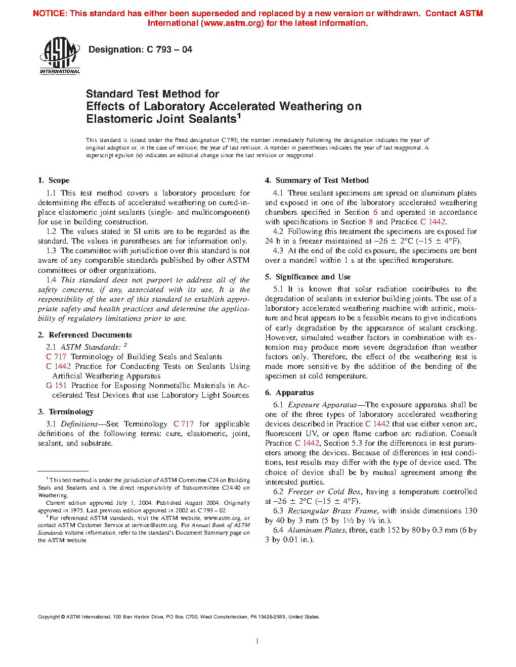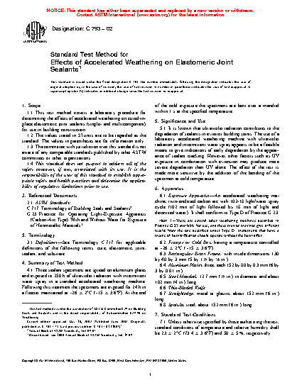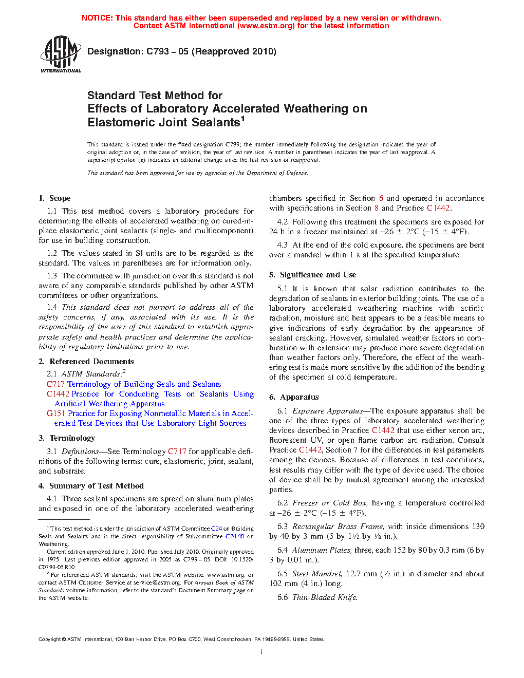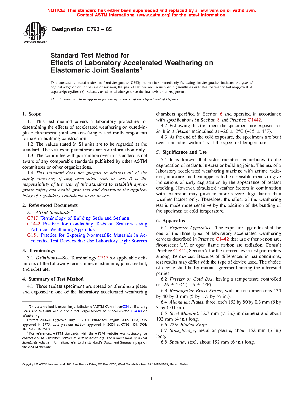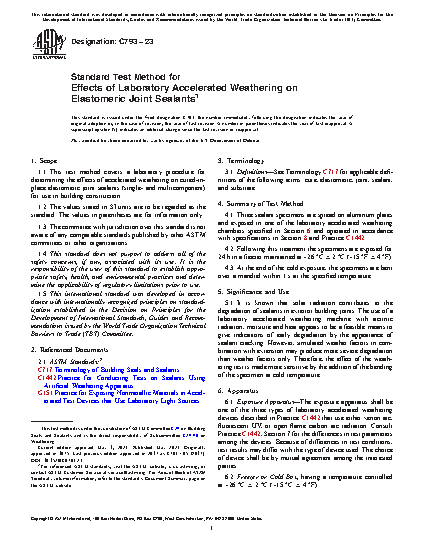 1.1 This test method covers a laboratory procedure for determining the effects of accelerated weathering on cured-in-place elastomeric joint sealants (single- and multicomponent) for use in building construction.