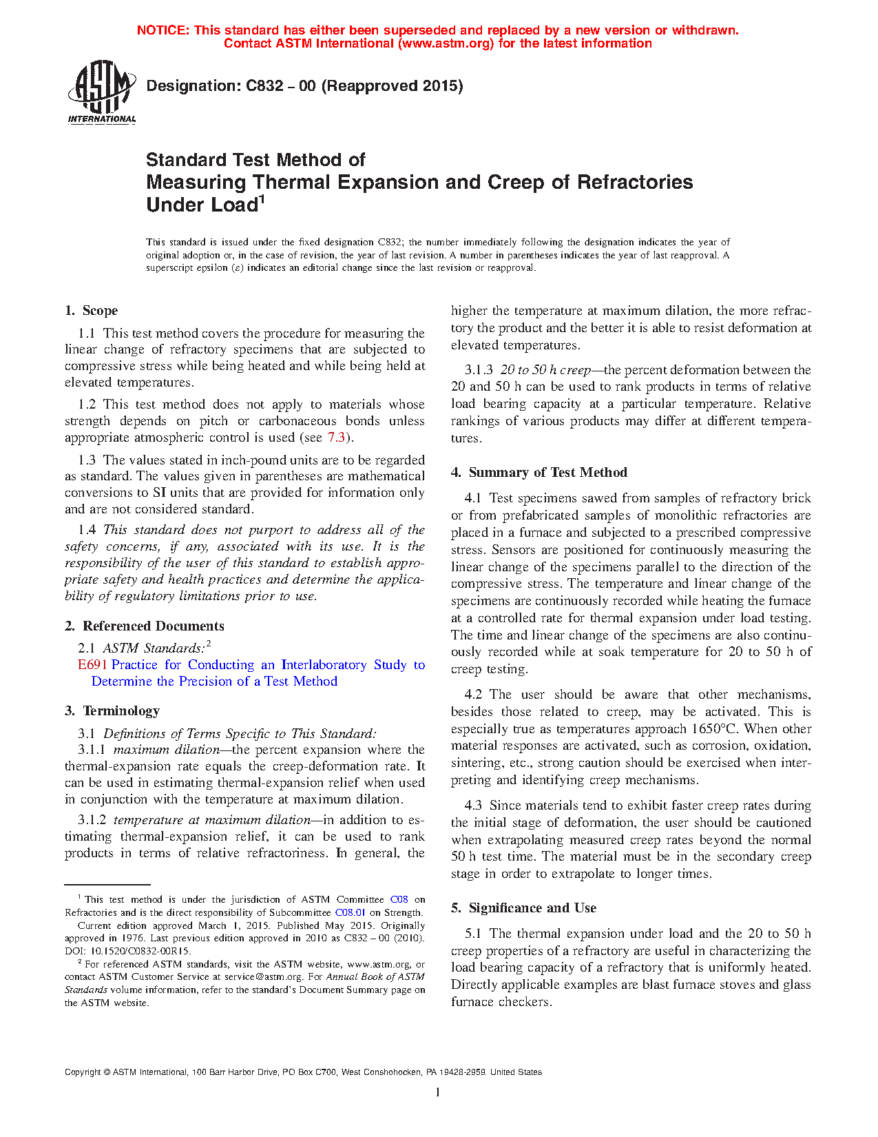 1.1 This test method covers the procedure for measuring the linear change of refractory specimens that are subjected to compressive stress while being heated and while being held at elevated temperatures.