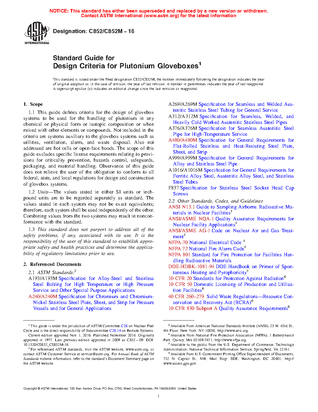 1.2 The scope of this guide excludes specific license requirements relating to provisions for criticality prevention, hazards control, safeguards, packaging, and material handling. Observance of this guide does not relieve the user of the obligation to conform to all federal, state, and local regulations for design and construction of glovebox systems.