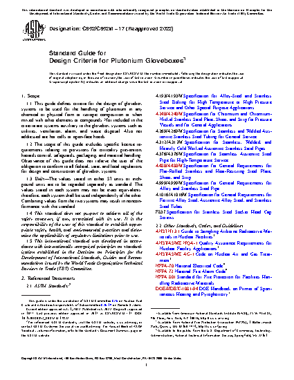 1.1 This guide defines criteria for the design of glovebox systems to be used for the handling of plutonium in any chemical or physical form or isotopic composition or when mixed with other elements or compounds. Not included in the criteria are systems auxiliary to the glovebox systems such as utilities, ventilation, alarm, and waste disposal. Also not addressed are hot cells or open-face hoods.