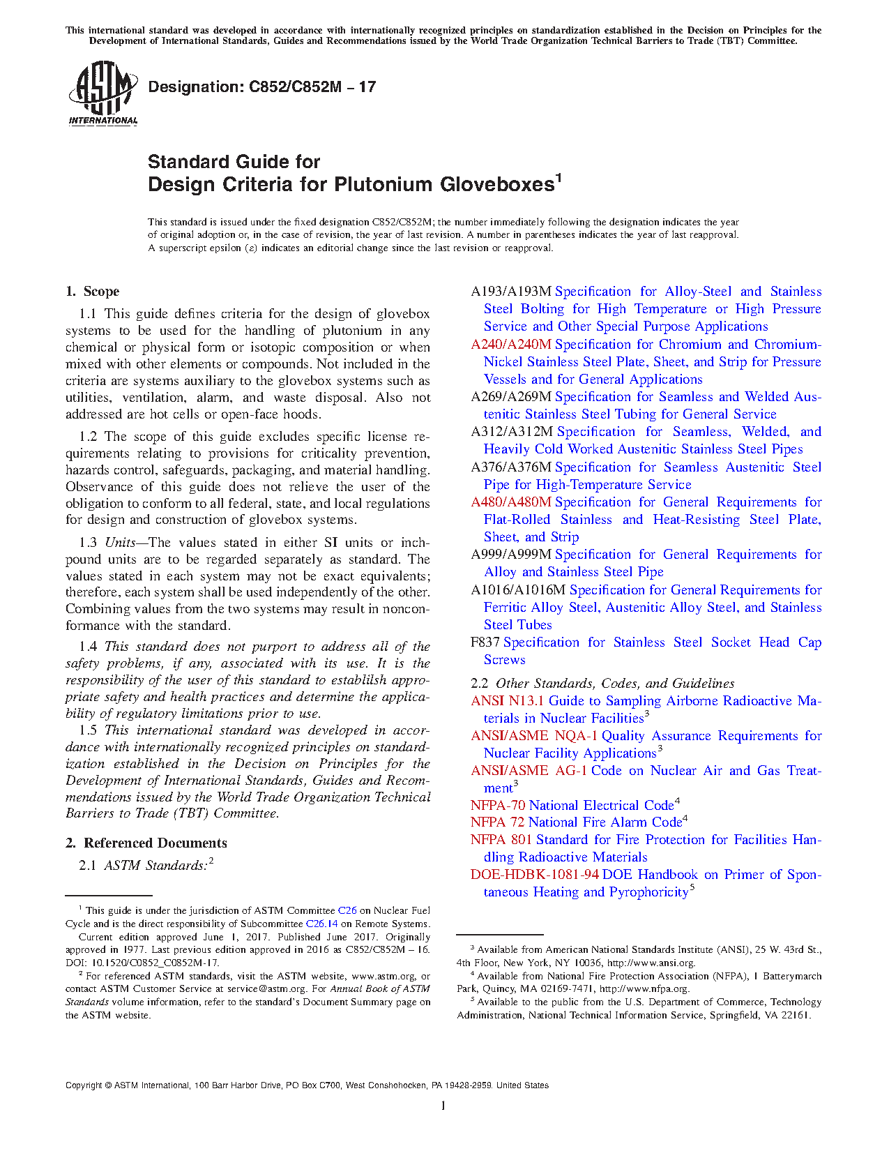 1.5 This international standard was developed in accordance with internationally recognized principles on standardization established in the Decision on Principles for the Development of International Standards, Guides and Recommendations issued by the World Trade Organization Technical Barriers to Trade (TBT) Committee.