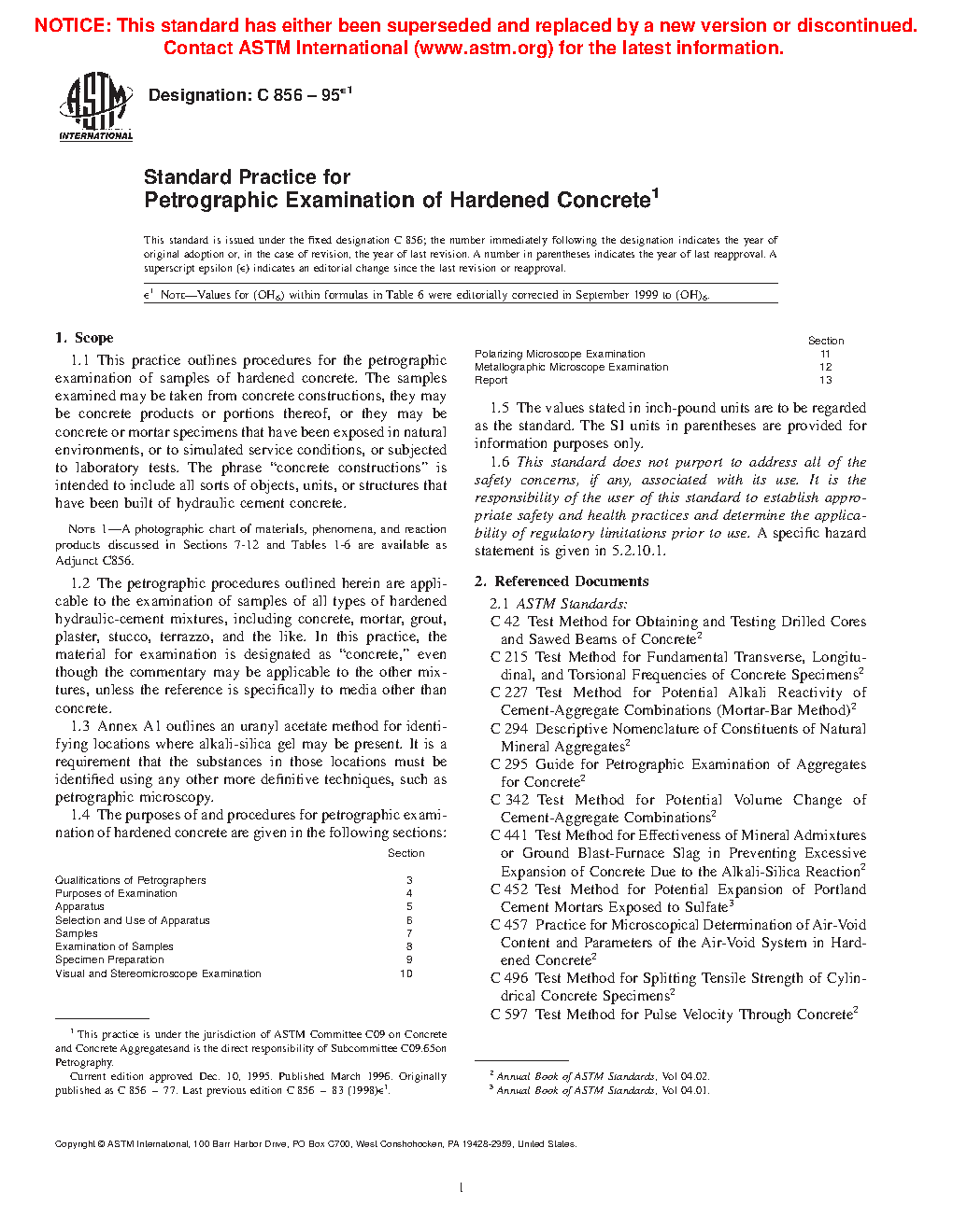 Section Qualifications of Petrographers 3 Purposes of Examination 4 Apparatus 5 Selection and Use of Apparatus 6 Samples 7 Examination of Samples 8 Specimen Preparation 9 Visual and Stereomicroscope Examination 10 Polarizing Microscope Examination 11 Metallographic Microscope Examination 12 Report 131.5 The values stated in inch-pound units are to be regarded as the standard. The SI units in parentheses are provided for information purposes only.