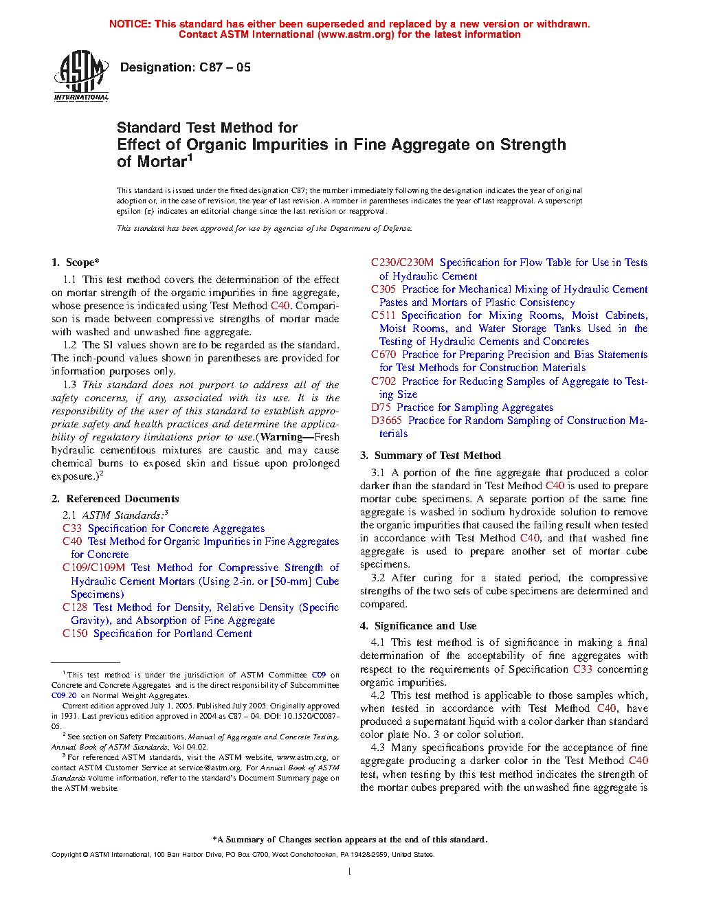 This test method is of significance in making a final determination of the acceptability of fine aggregates with respect to the requirements of Specification C33 concerning organic impurities.