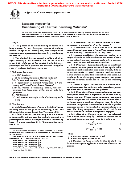 1.1 This practice covers the conditioning of thermal insulating materials for tests. Since prior exposure of insulating materials to high or low humidity will affect the equilibrium moisture content, a procedure is also given for preconditioning the materials.