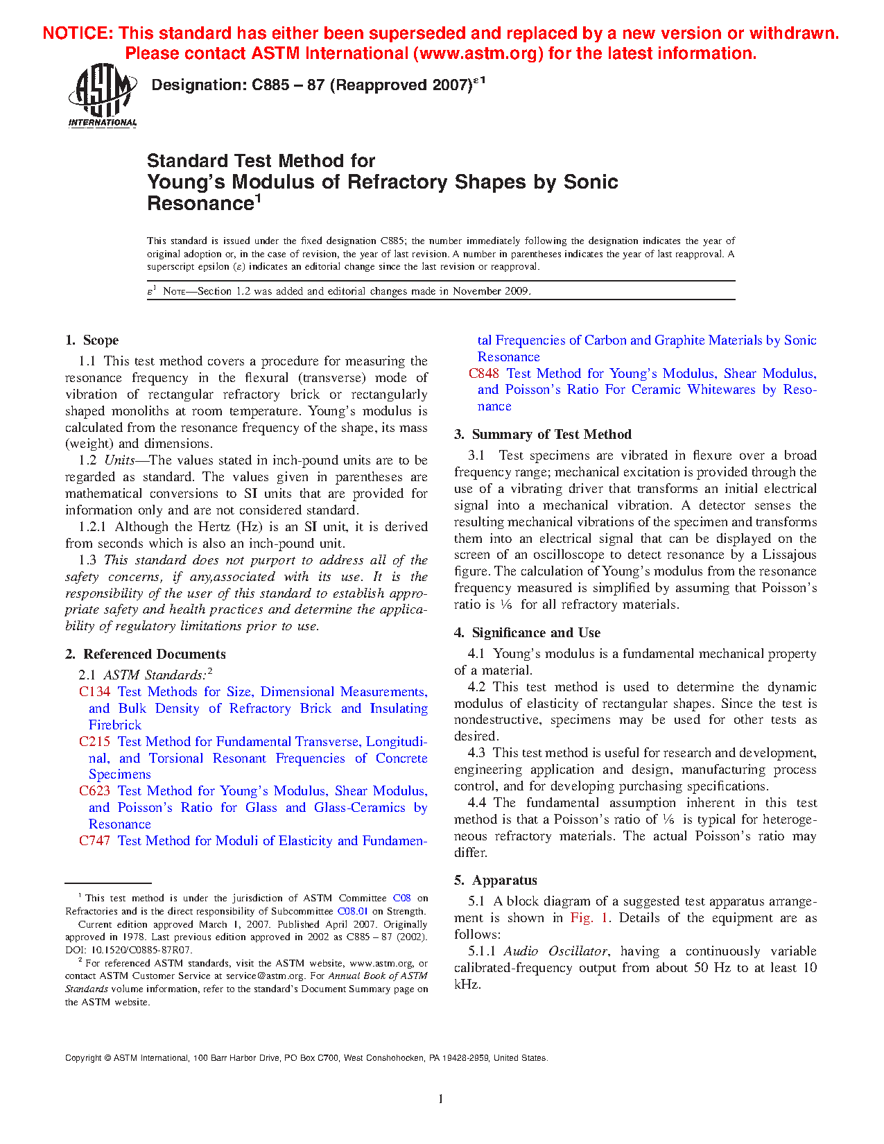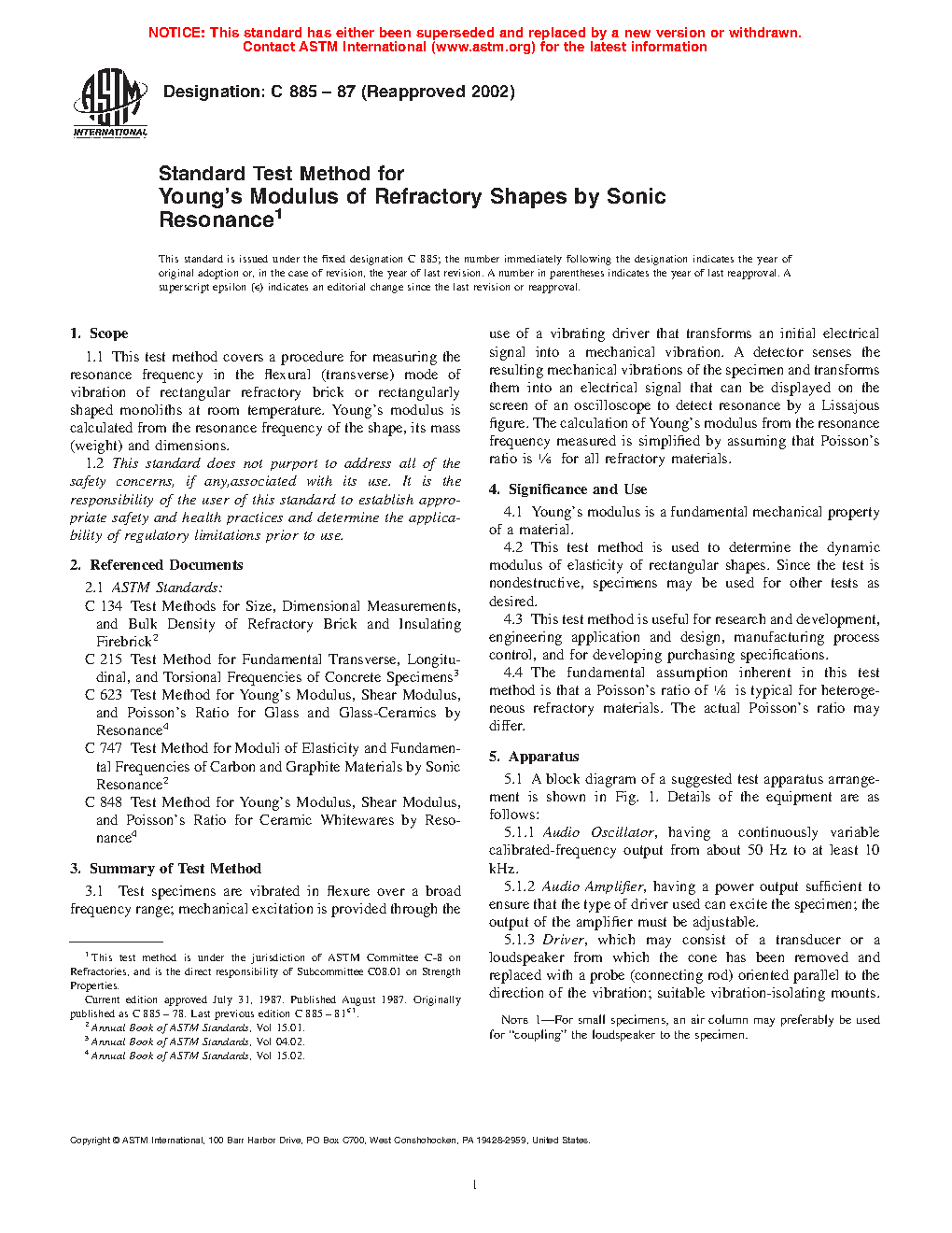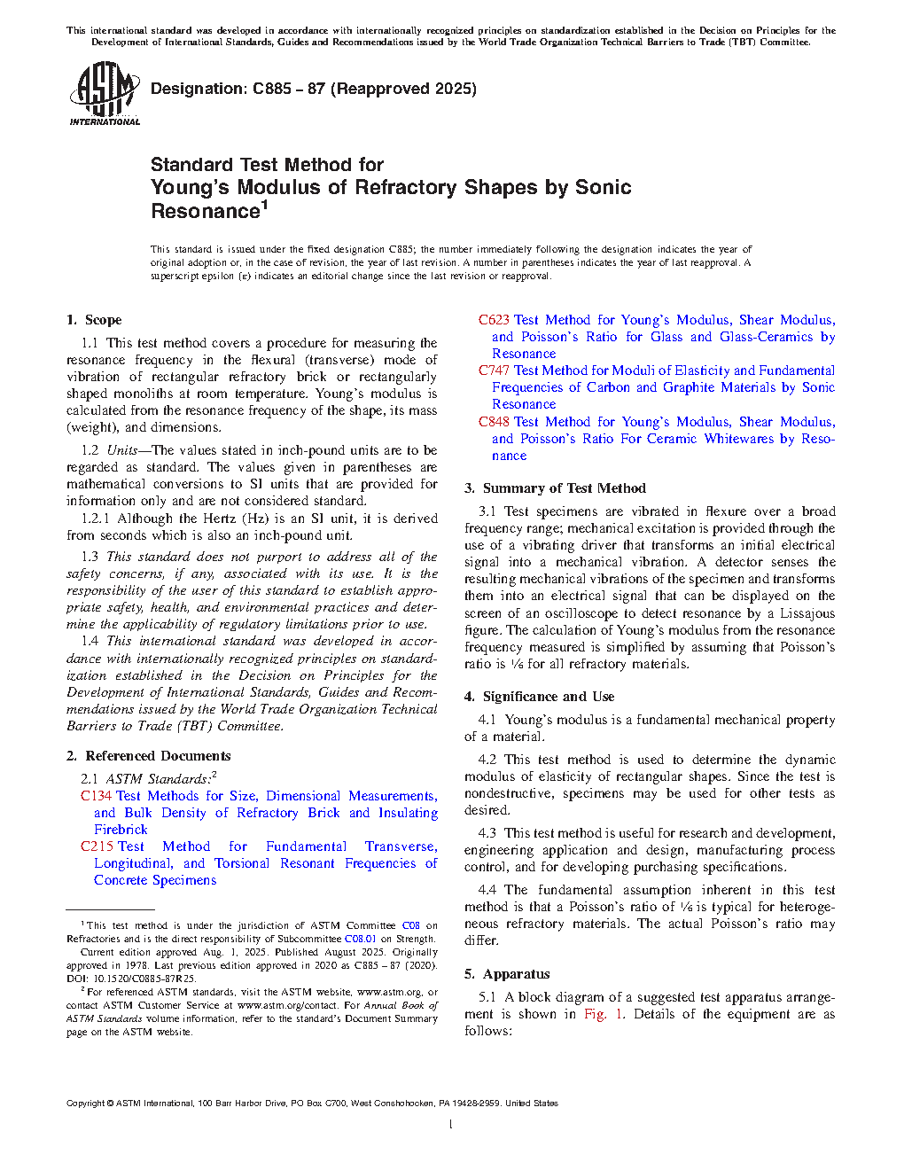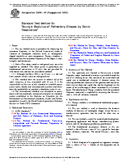 Standard Test Method for Young's Modulus of Refractory Shapes by Sonic Resonance