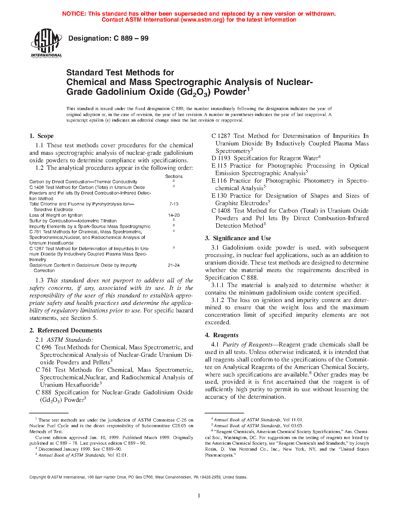 | C761 Test Methods for Chemical, Mass Spectrometric, | 3 |