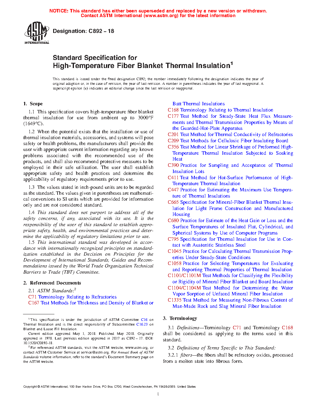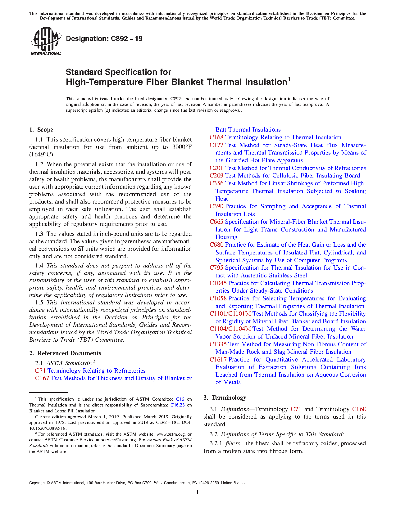 1.1 This specification covers high-temperature fiber blanket thermal insulation for use from ambient up to 3000°F (1649°C).