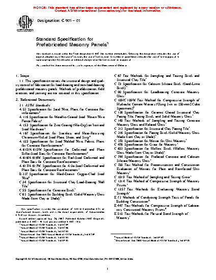 1.1 This specification covers the structural design and quality control of fabrication for load-bearing and non-load-bearing prefabricated masonry panels. Methods of prefabrication, field erection, and jointing are not covered in this specification.