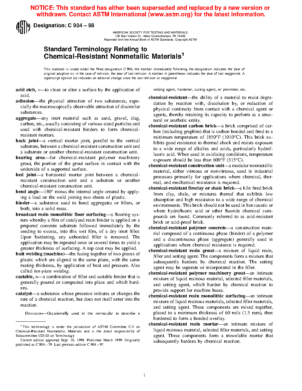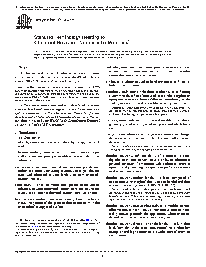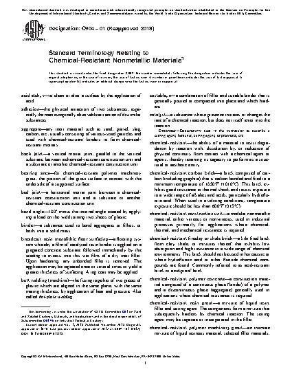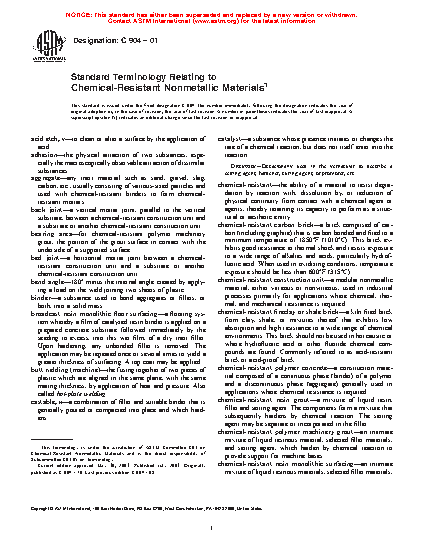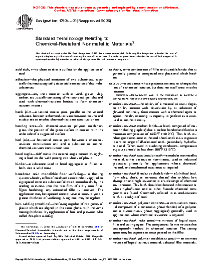 Standard Terminology Relating to Chemical-Resistant Nonmetallic Materials
