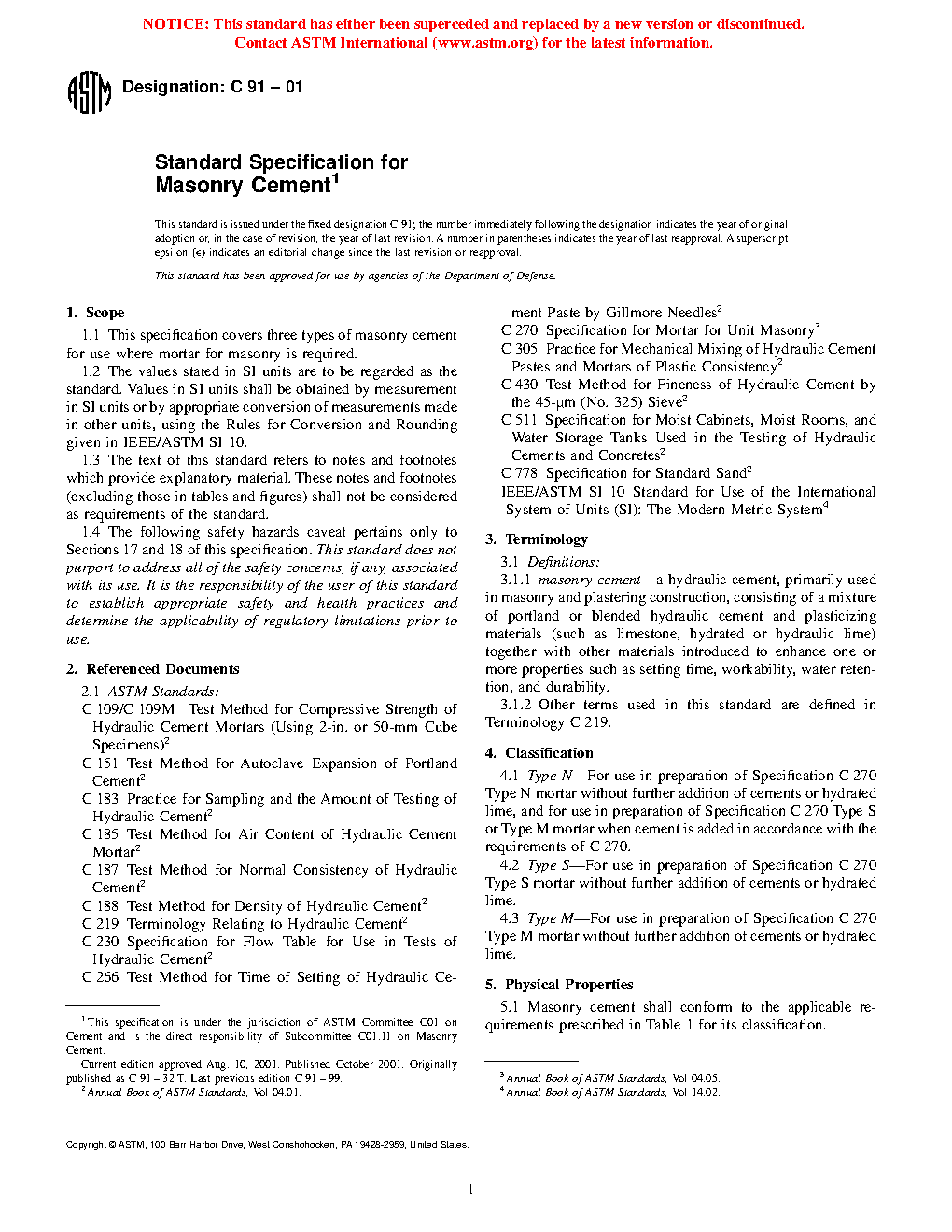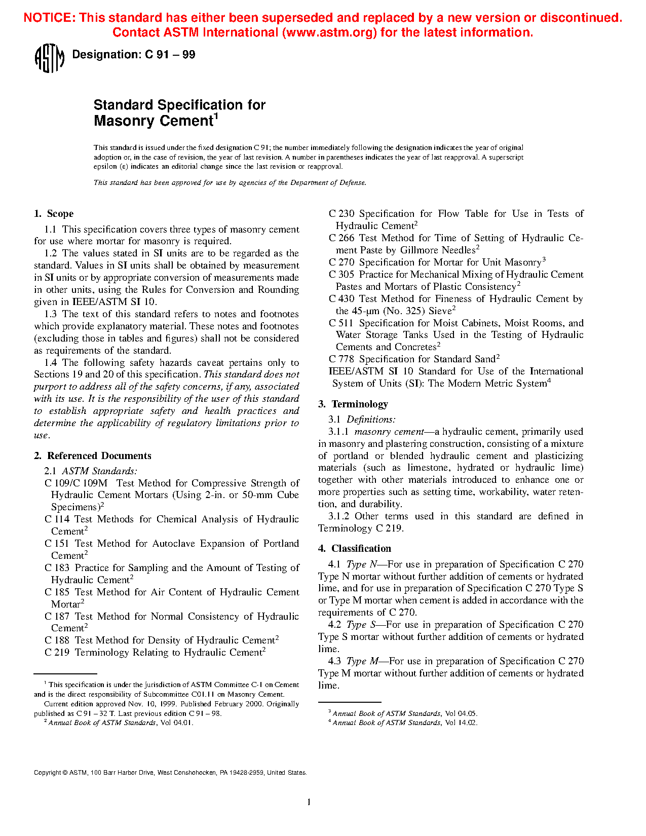 1.1 This specification covers three types of masonry cement for use where mortar for masonry is required.