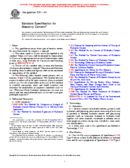 1.1 This specification covers three types of masonry cement for use where mortar for masonry is required.