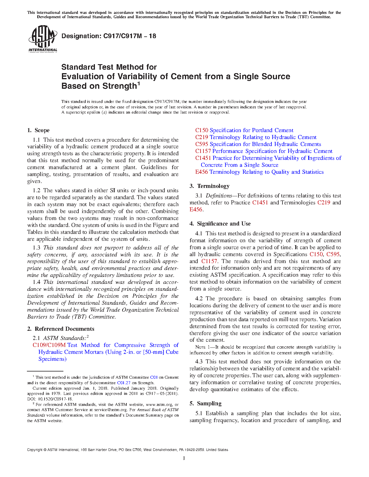 1.4 This international standard was developed in accordance with internationally recognized principles on standardization established in the Decision on Principles for the Development of International Standards, Guides and Recommendations issued by the World Trade Organization Technical Barriers to Trade (TBT) Committee.