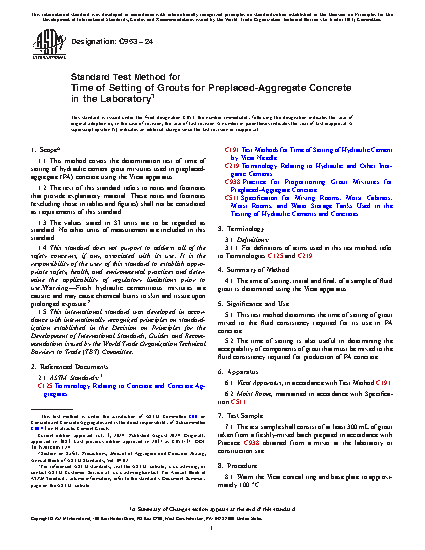 Standard Test Method for Time of Setting of Grouts for Preplaced-Aggregate Concrete in the Laboratory