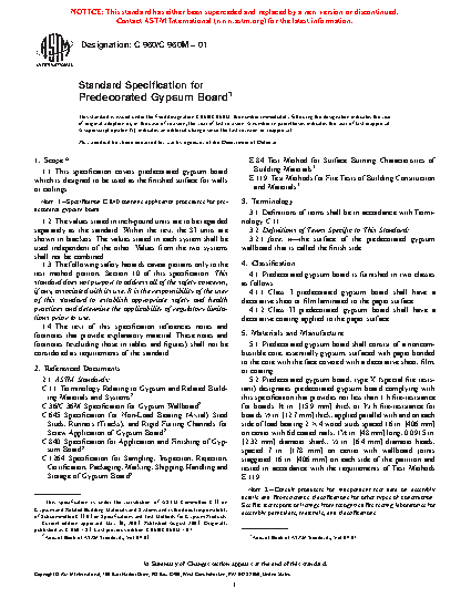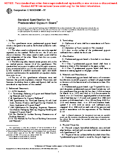 1.1 This specification covers predecorated gypsum board which is designed to be used as the finished surface for walls or ceilings.