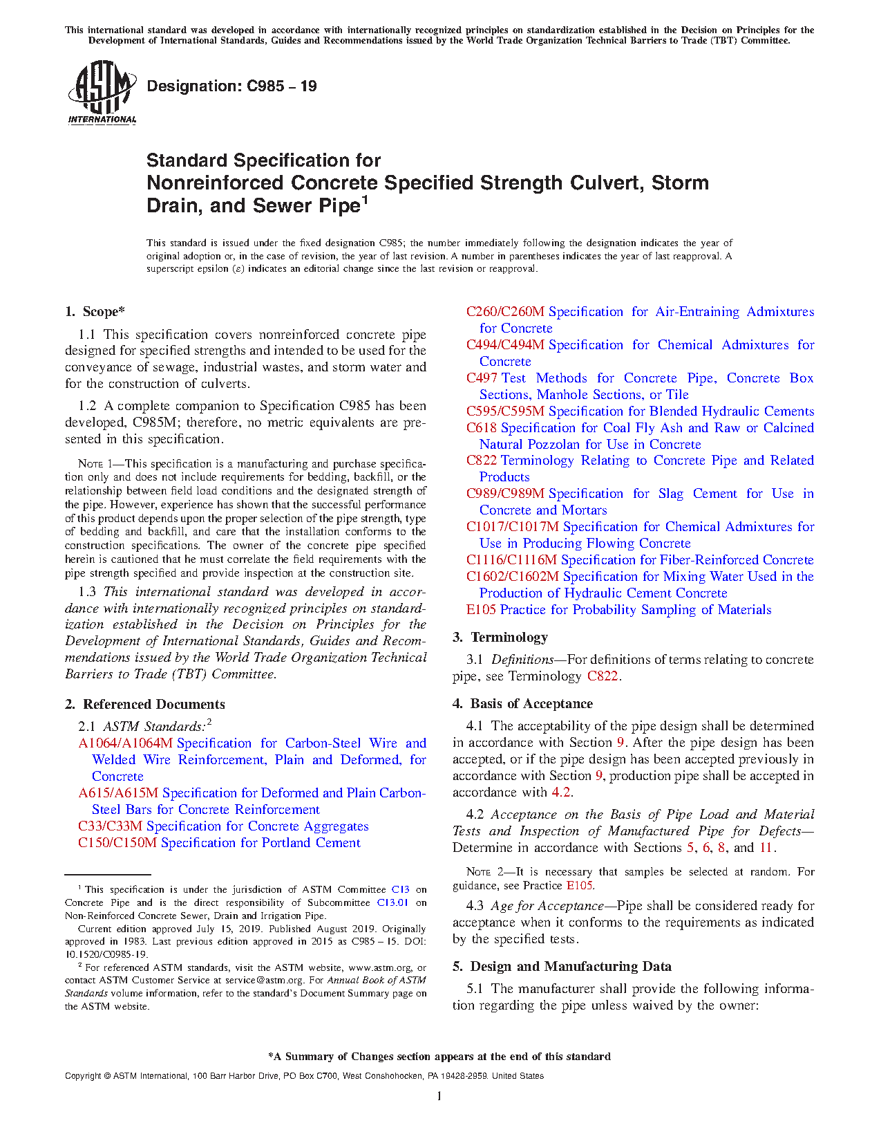 1.2 A complete companion to Specification C985 has been developed, C985M; therefore, no metric equivalents are presented in this specification.