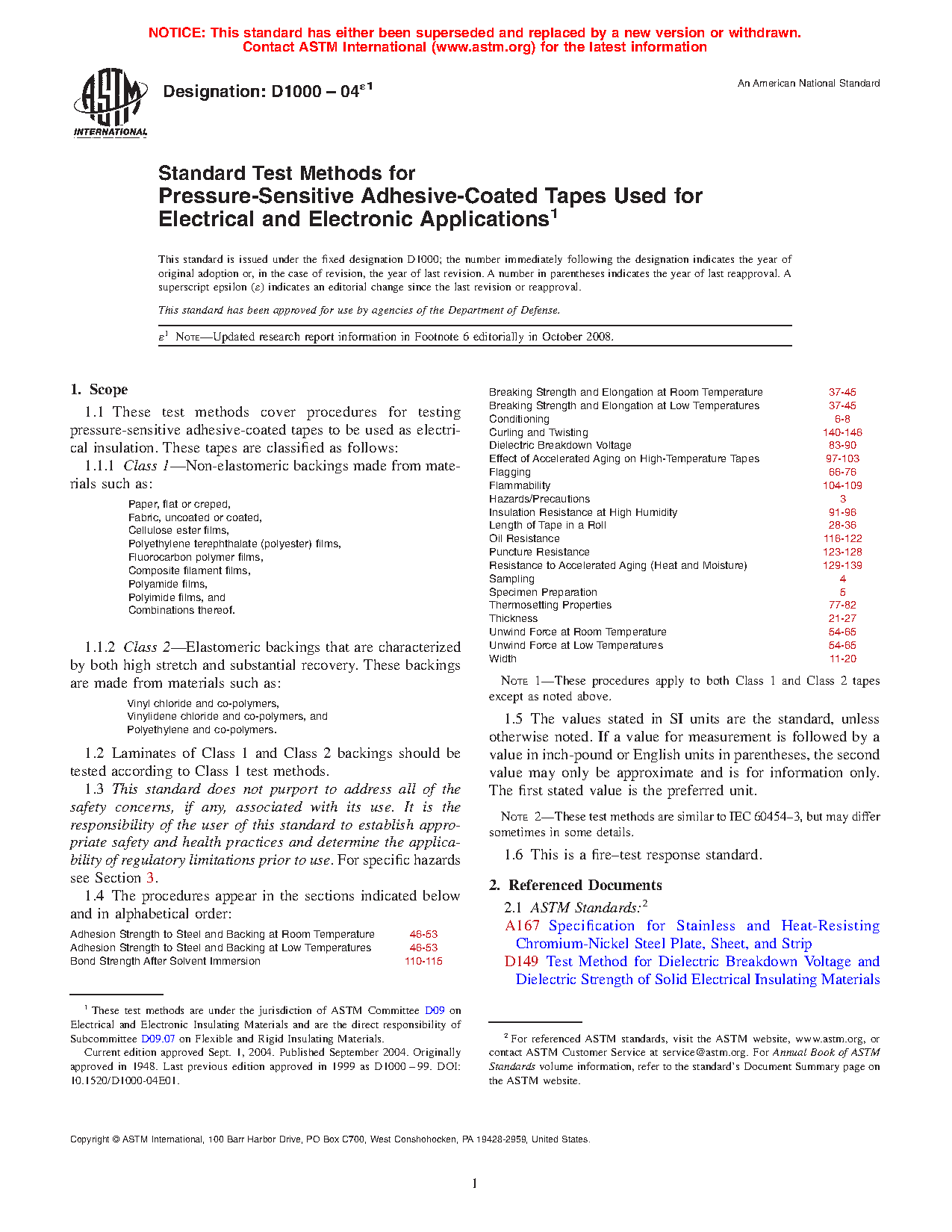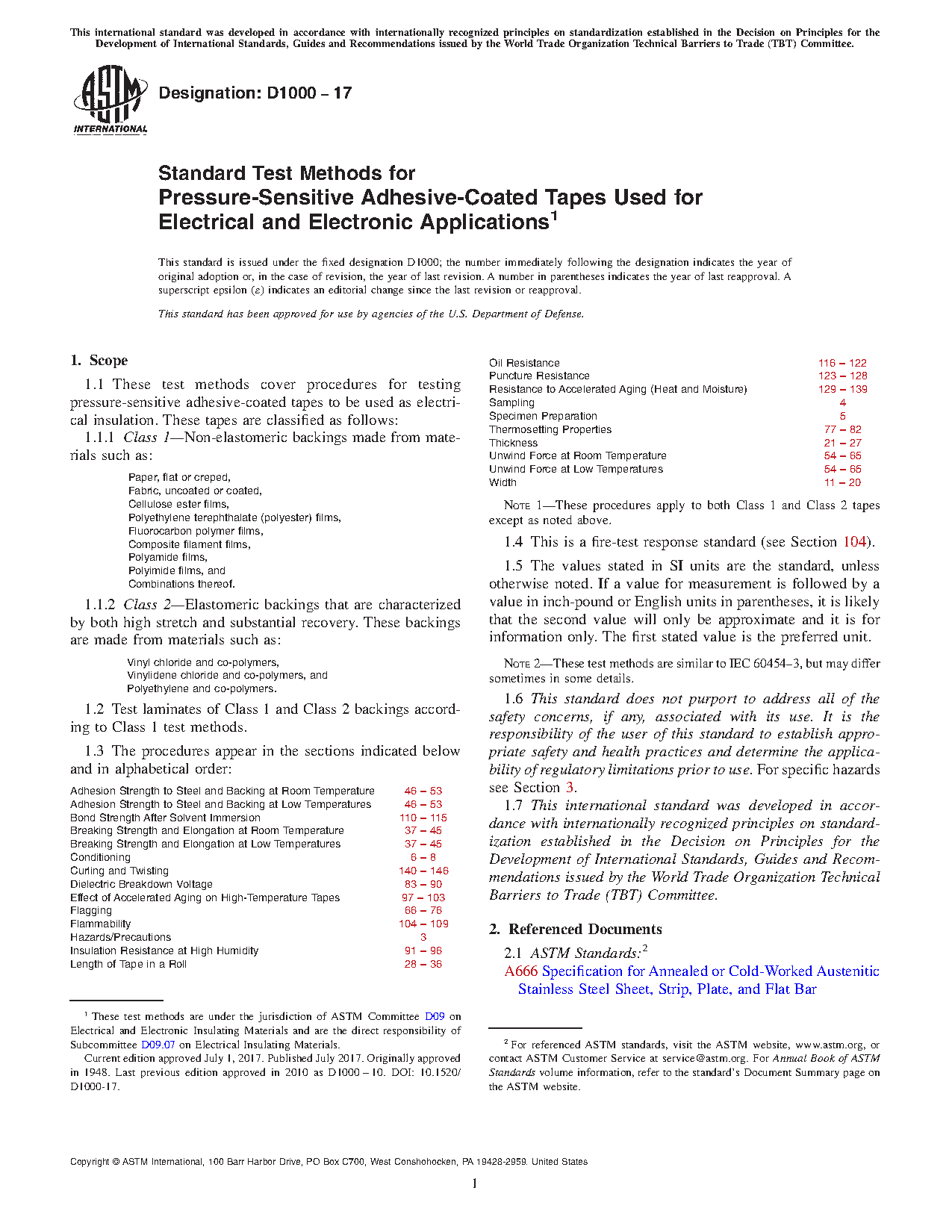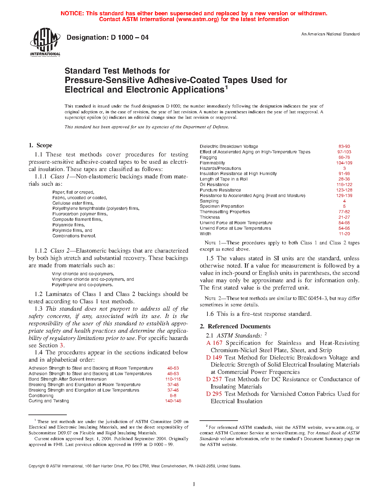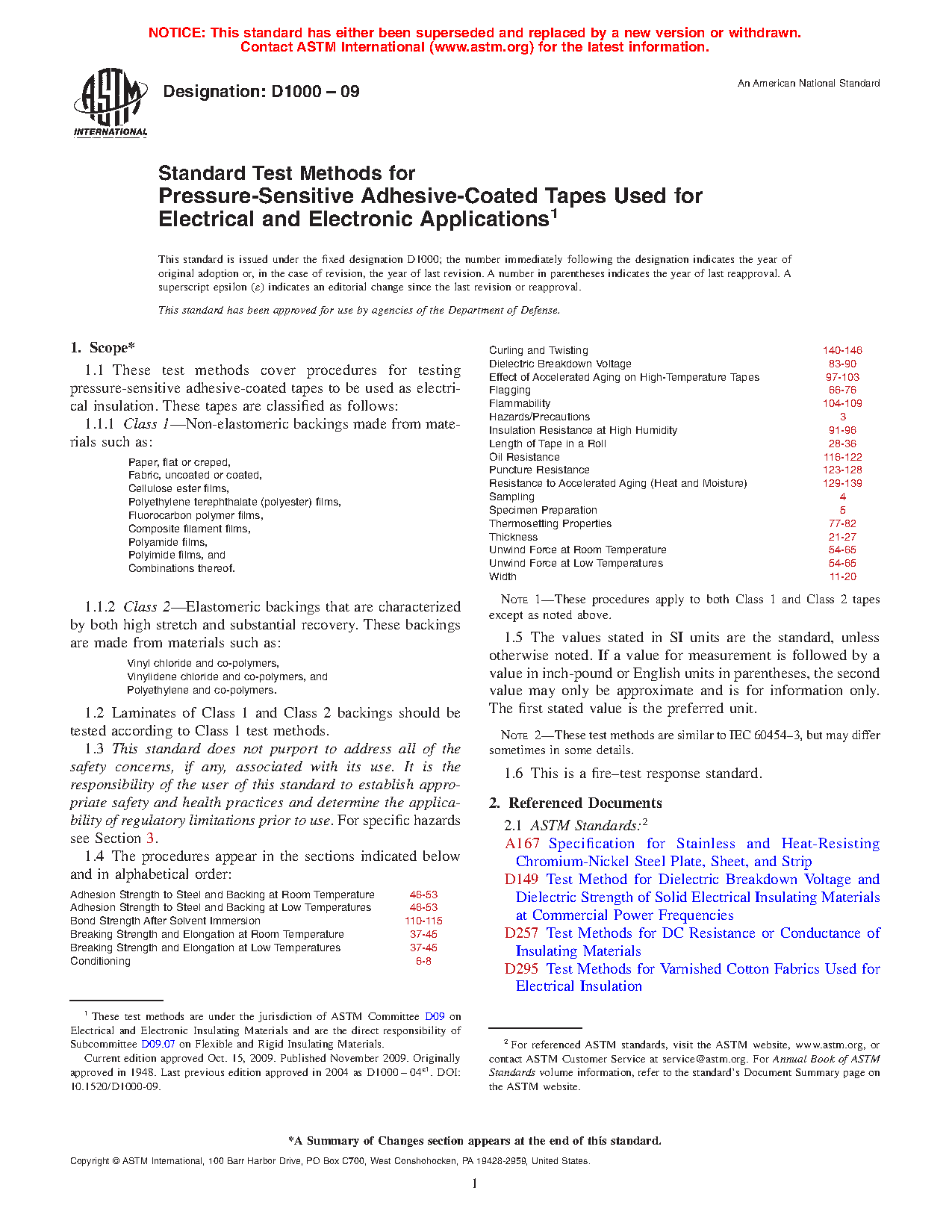 1.1 These test methods cover procedures for testing pressure-sensitive adhesive-coated tapes to be used as electrical insulation. These tapes are classified as follows: