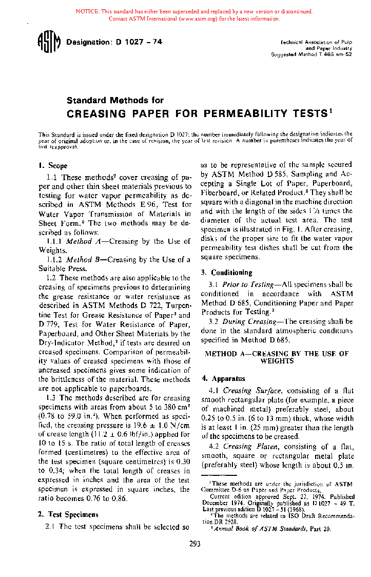 Methods for Creasing Paper for Permeability Tests (Withdrawn 1979)