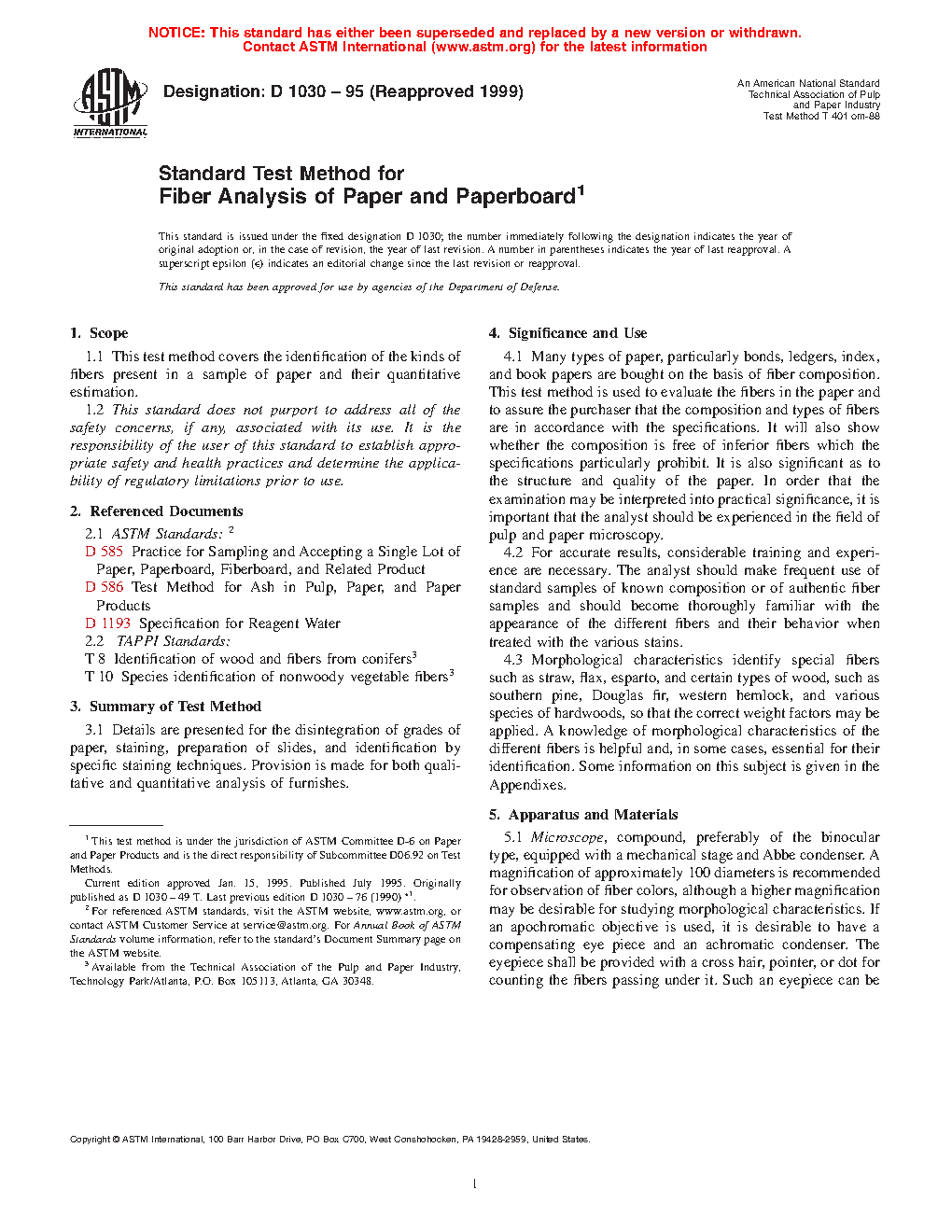 Many types of paper, particularly bonds, ledgers, index, and book papers are bought on the basis of fiber composition. This test method is used to evaluate the fibers in the paper and to ensure the purchaser that the composition and types of fibers are in accordance with the specifications. It will also show whether the composition is free of inferior fibers which the specifications particularly prohibit. It is also significant as to the structure and quality of the paper. In order that the examination may be interpreted into practical significance, it is important that the analyst should be experienced in the field of pulp and paper microscopy.