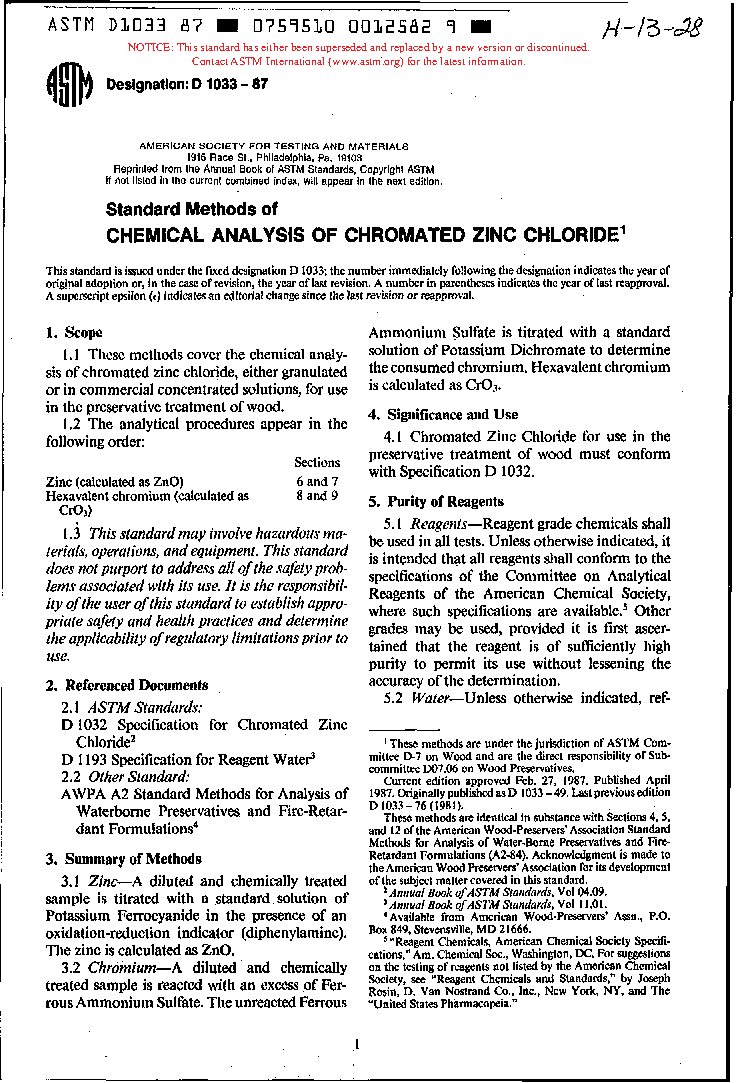Methods of Chemical Analysis of Chromated Zinc Chloride (Withdrawn 1992)
