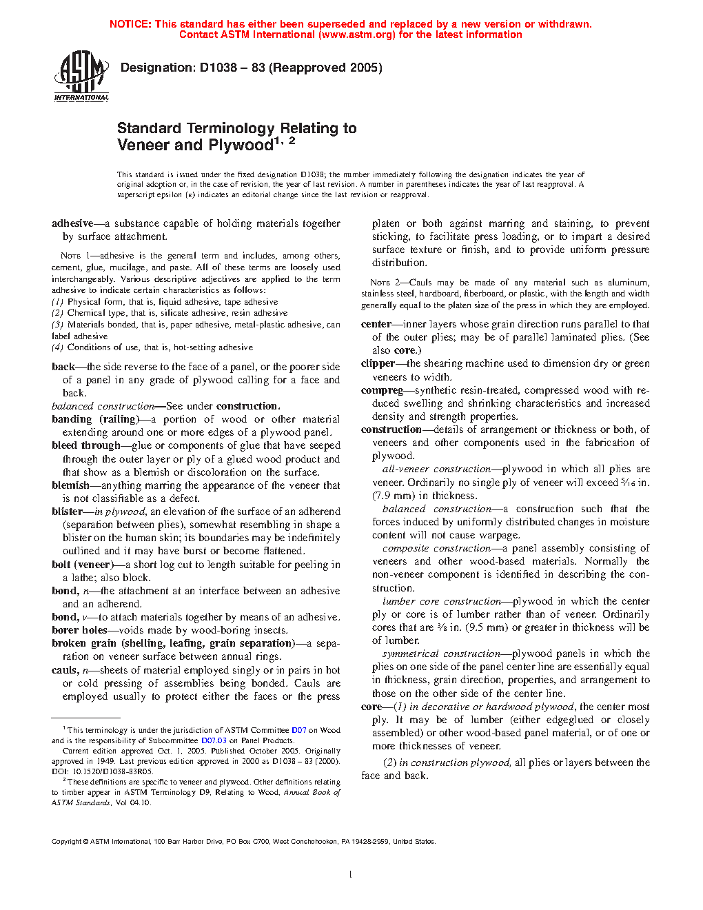 Standard Terminology Relating to Veneer, Plywood, and Wood Structural Panels